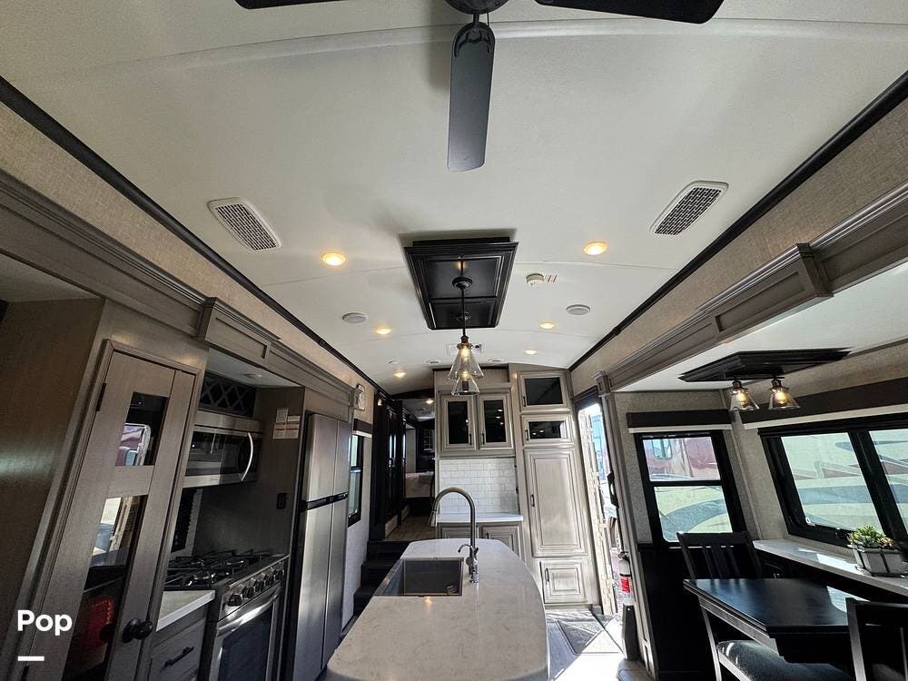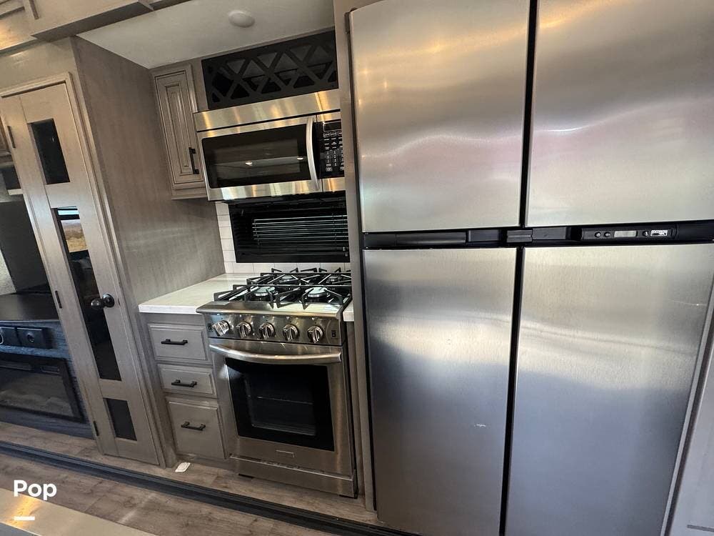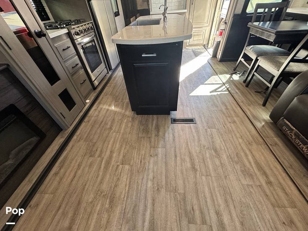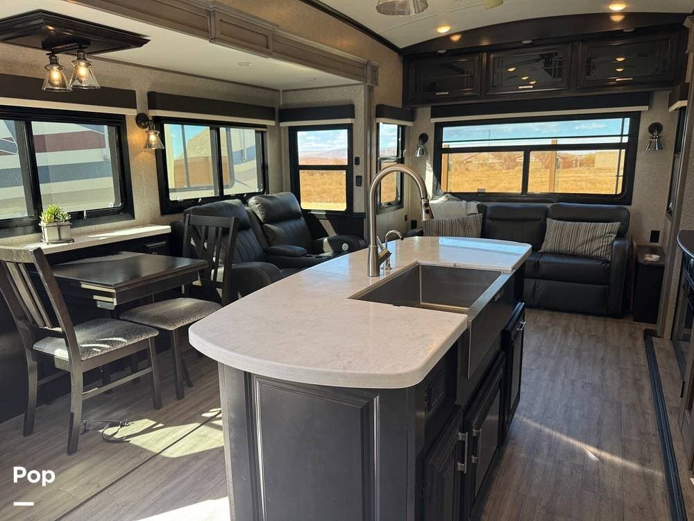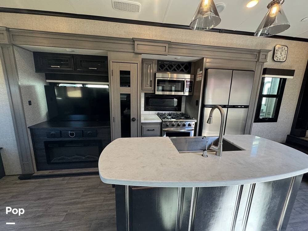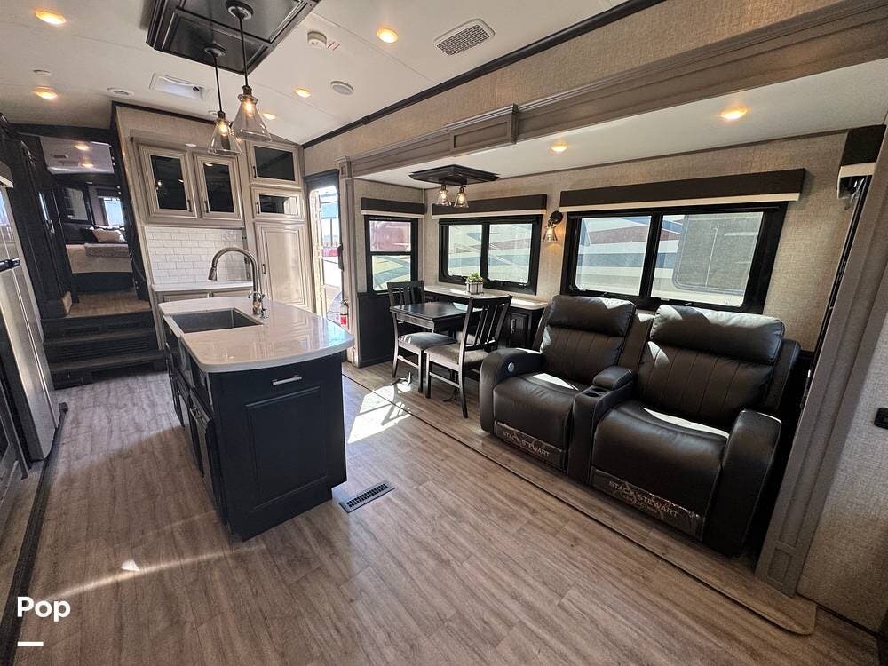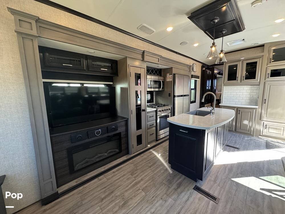 Step inside the 2022 Jayco Pinnacle 36SSWS, and you're greeted by a blend of elegance, innovation, and home-like warmth. Designed with full-time RVers in mind, this fifth wheel redefines mobile luxury. Its most distinctive feature -- the super slide with a slide within a slide -- dramatically extends the living space, creating an expansive, open-concept interior that feels more like a condo than an RV.
