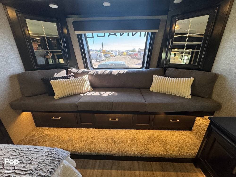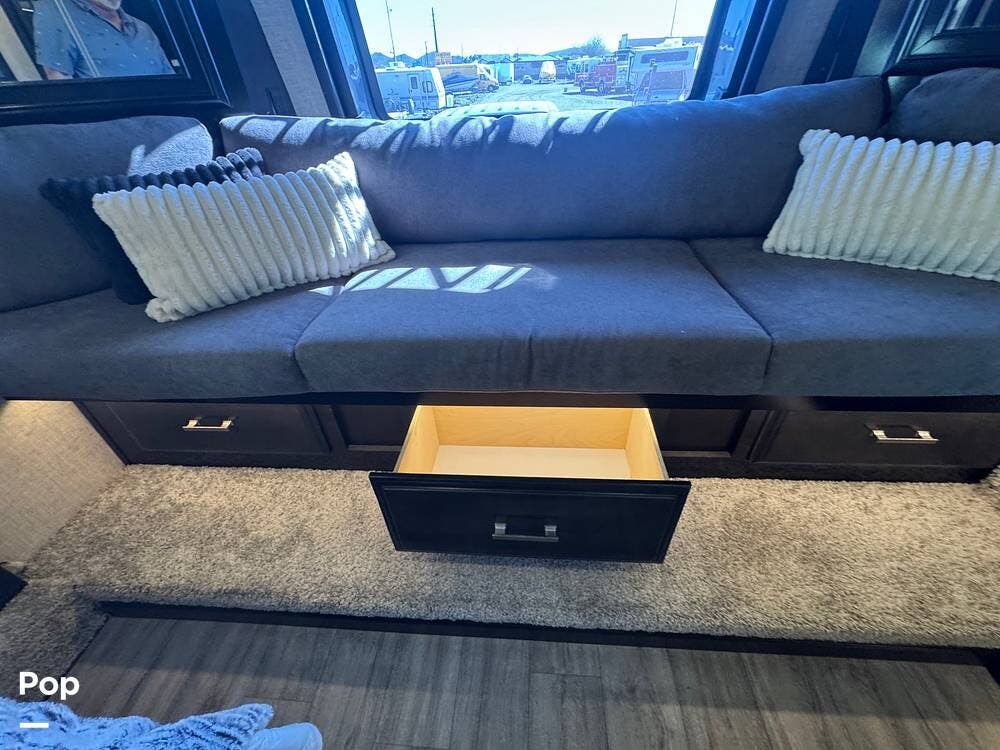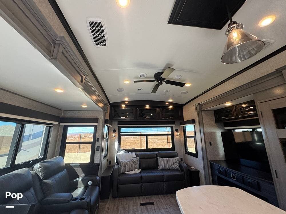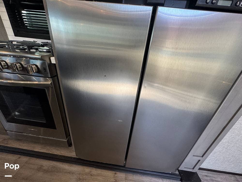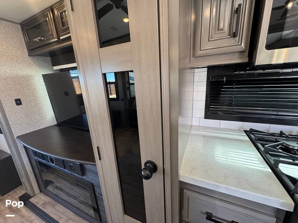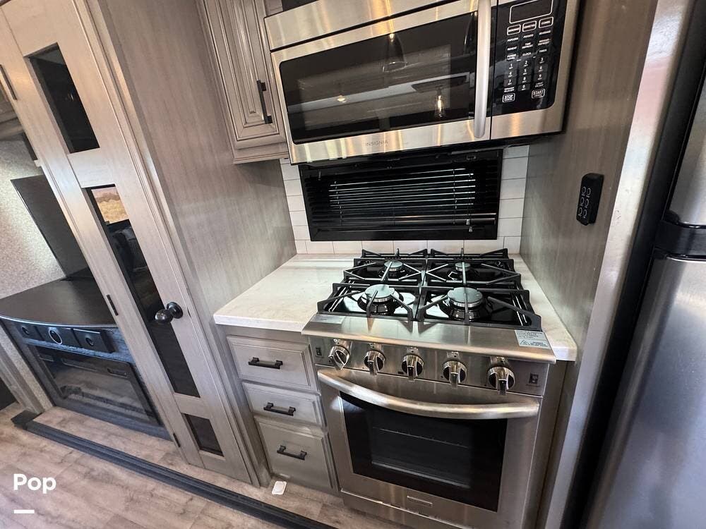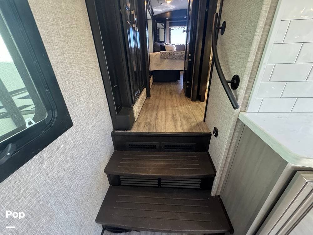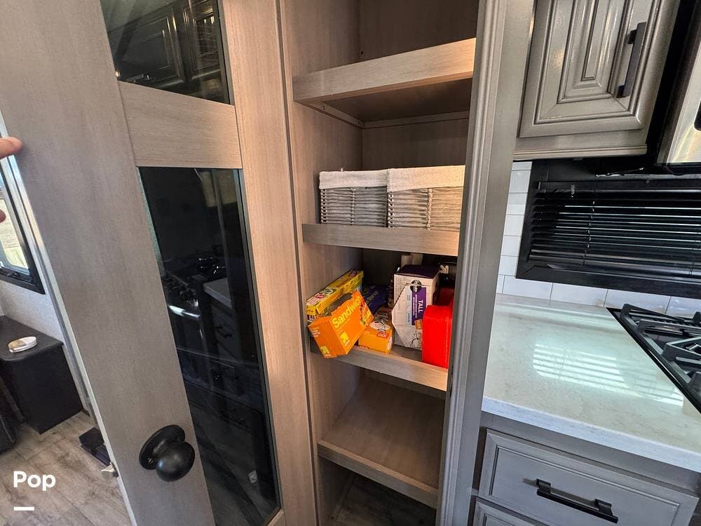 Step inside the 2022 Jayco Pinnacle 36SSWS, and you're greeted by a blend of elegance, innovation, and home-like warmth. Designed with full-time RVers in mind, this fifth wheel redefines mobile luxury. Its most distinctive feature -- the super slide with a slide within a slide -- dramatically extends the living space, creating an expansive, open-concept interior that feels more like a condo than an RV.