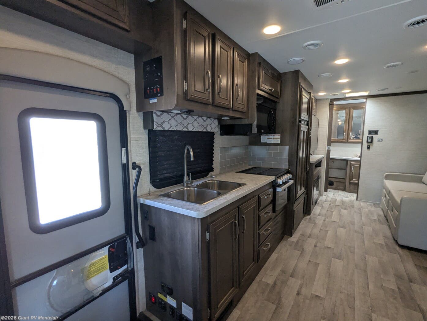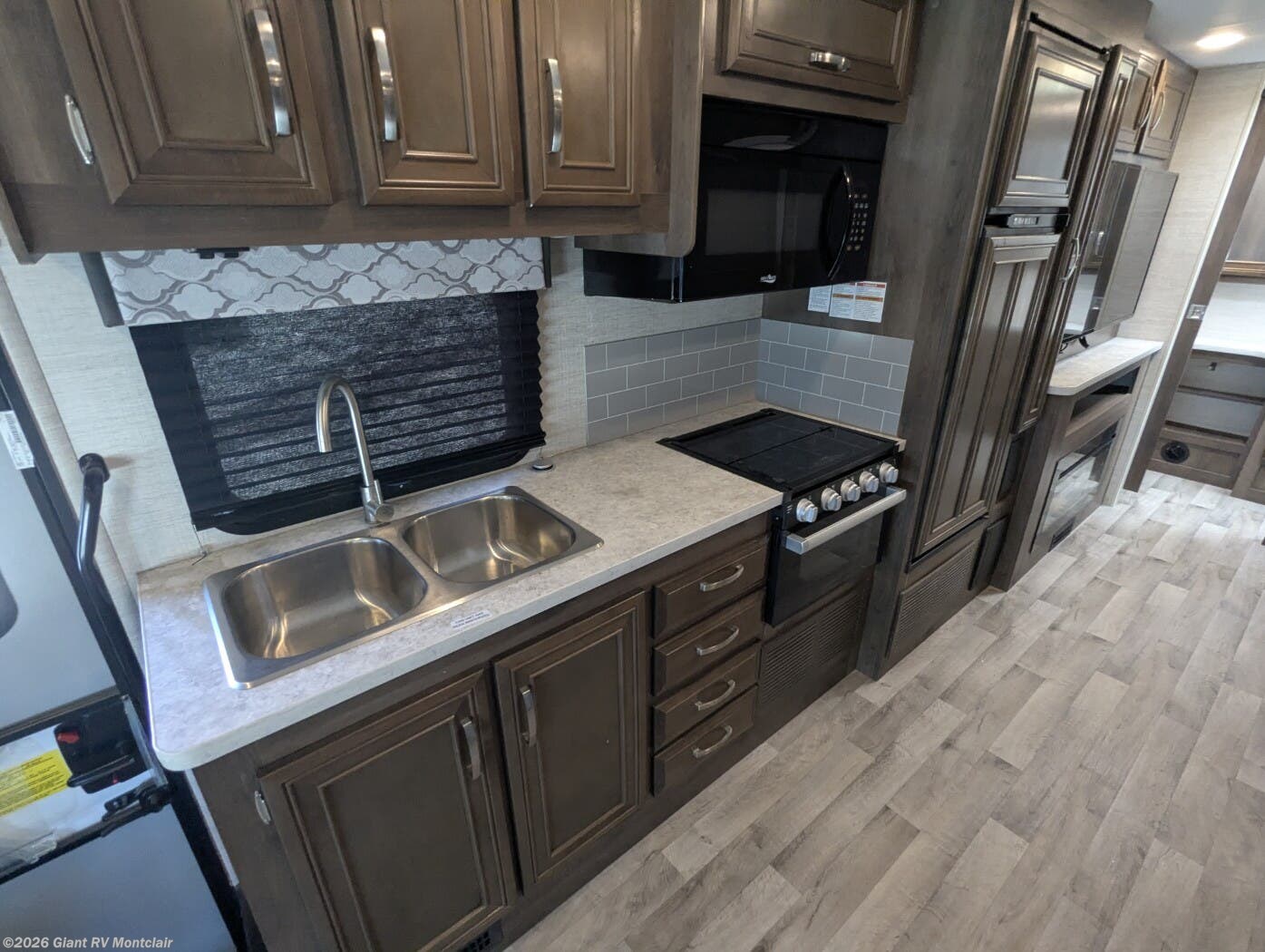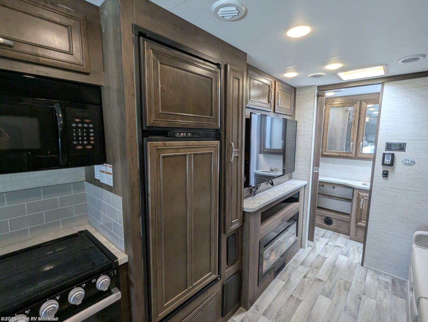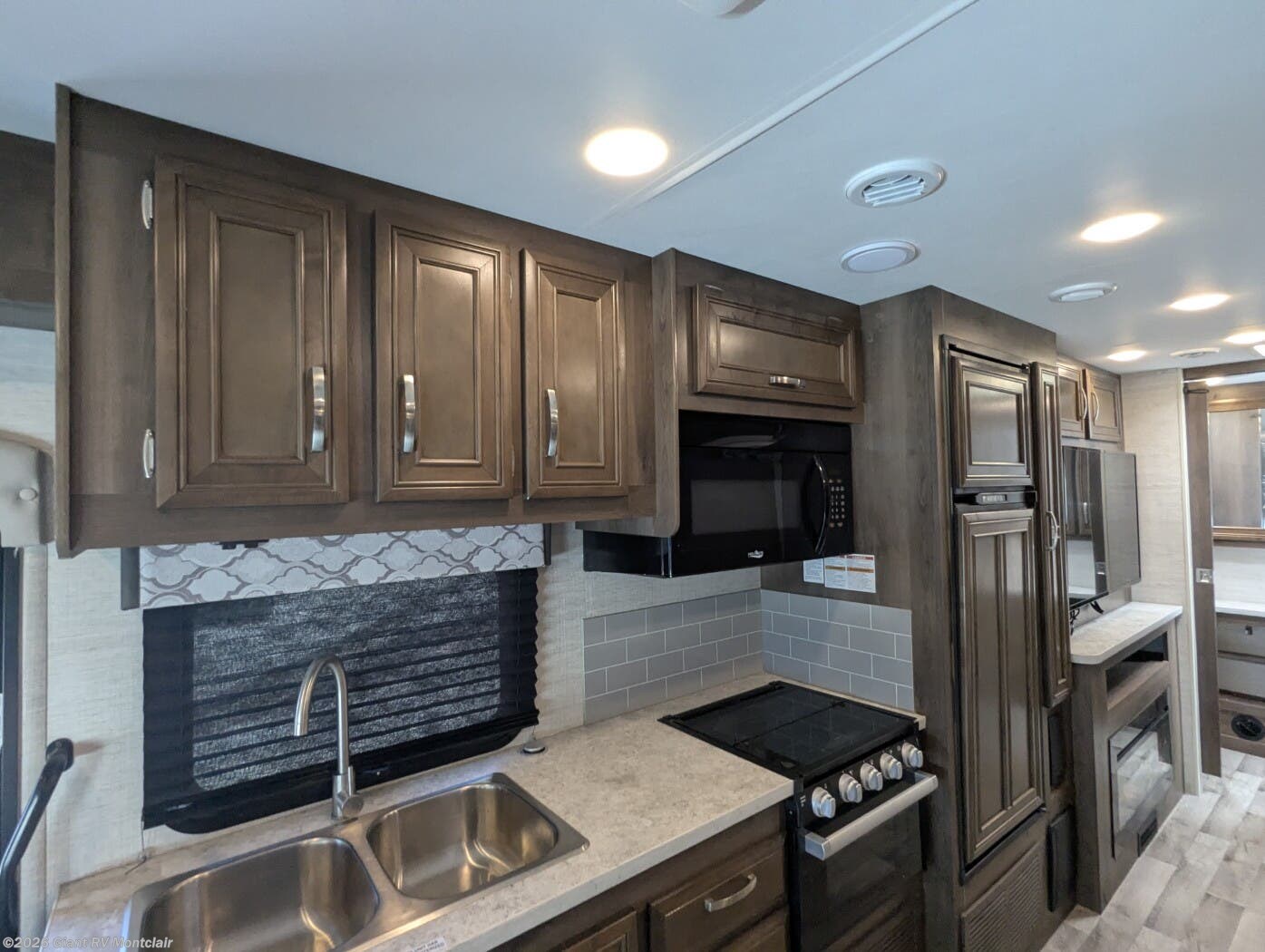 • Fully Equipped Kitchen with 3-burner range, oven, microwave, double-door refrigerator, and ample storage — ideal for meals on the road