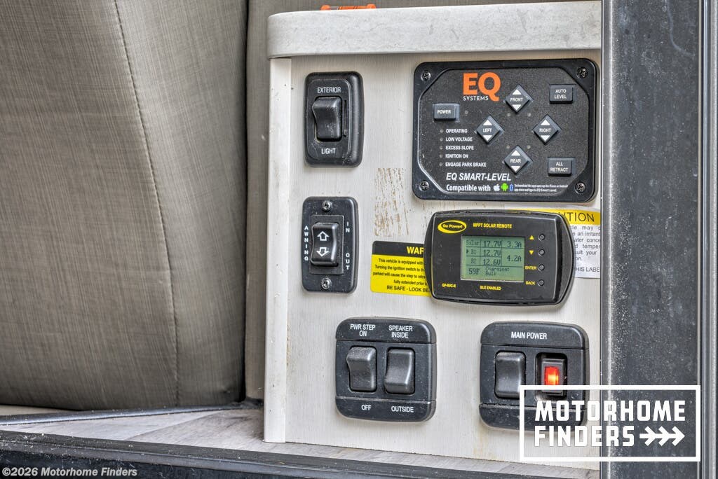 Automatic Leveling Jacks, Awning, Backup Monitor, Black Tank Flush, External Shower, Hitch, Ladder, Leveling Jacks, Power Awning, Roof Vent, Side View Cameras, Skylight, Slideout -