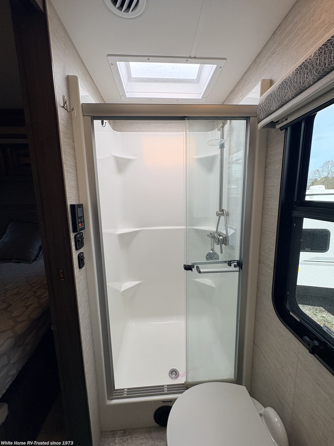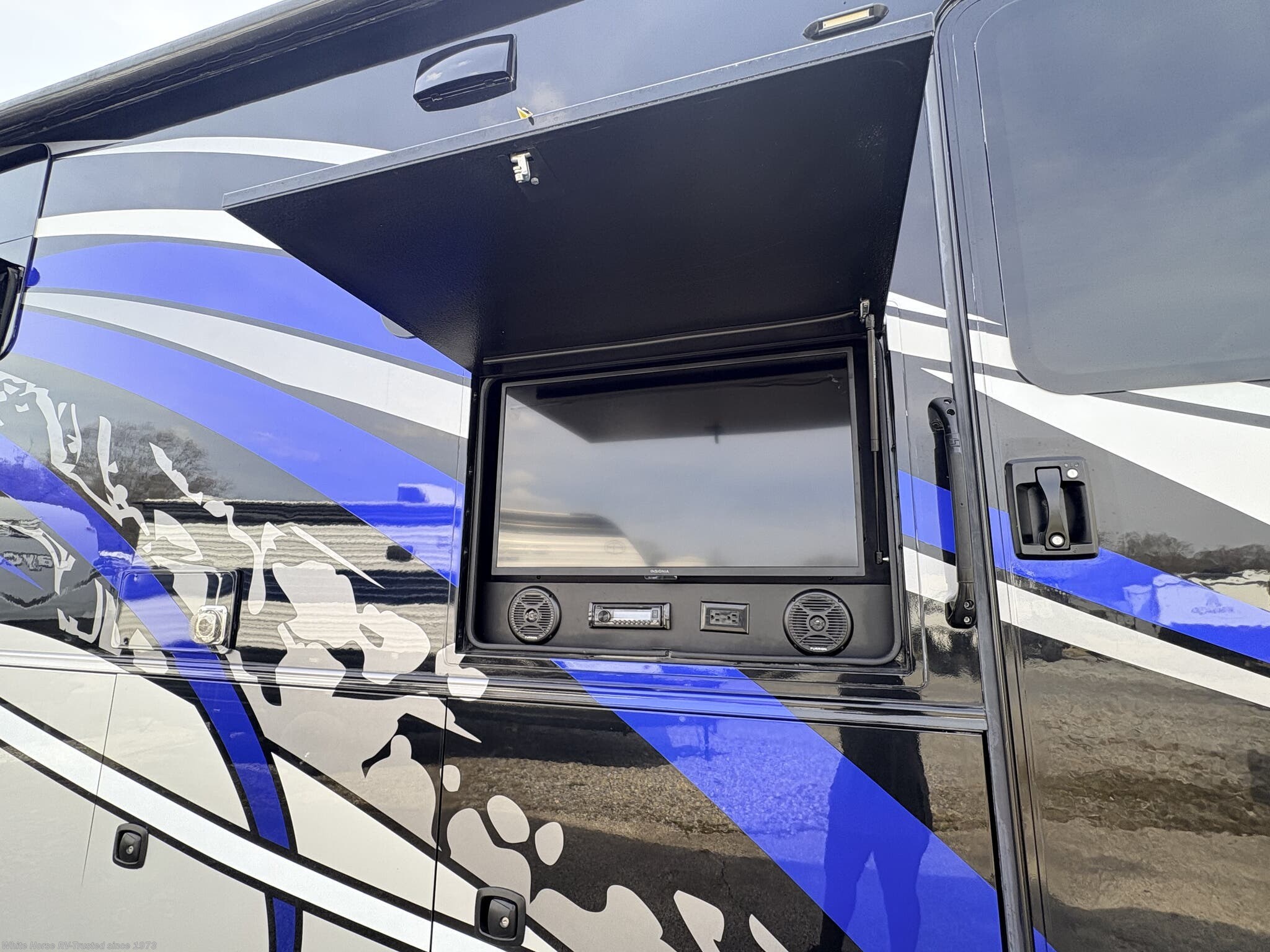 Exterior Speakers, External Shower, Front Fiberglass Cap w/Window, Full Body Paint, Ladder, Outside Entertainment Center, Pass Thru Storage, Power Awning, Power Entrance Step, Power Roof Vent, Side View Cameras, Skylight, Slideout, Slide-out Awning, Tinted Windows -