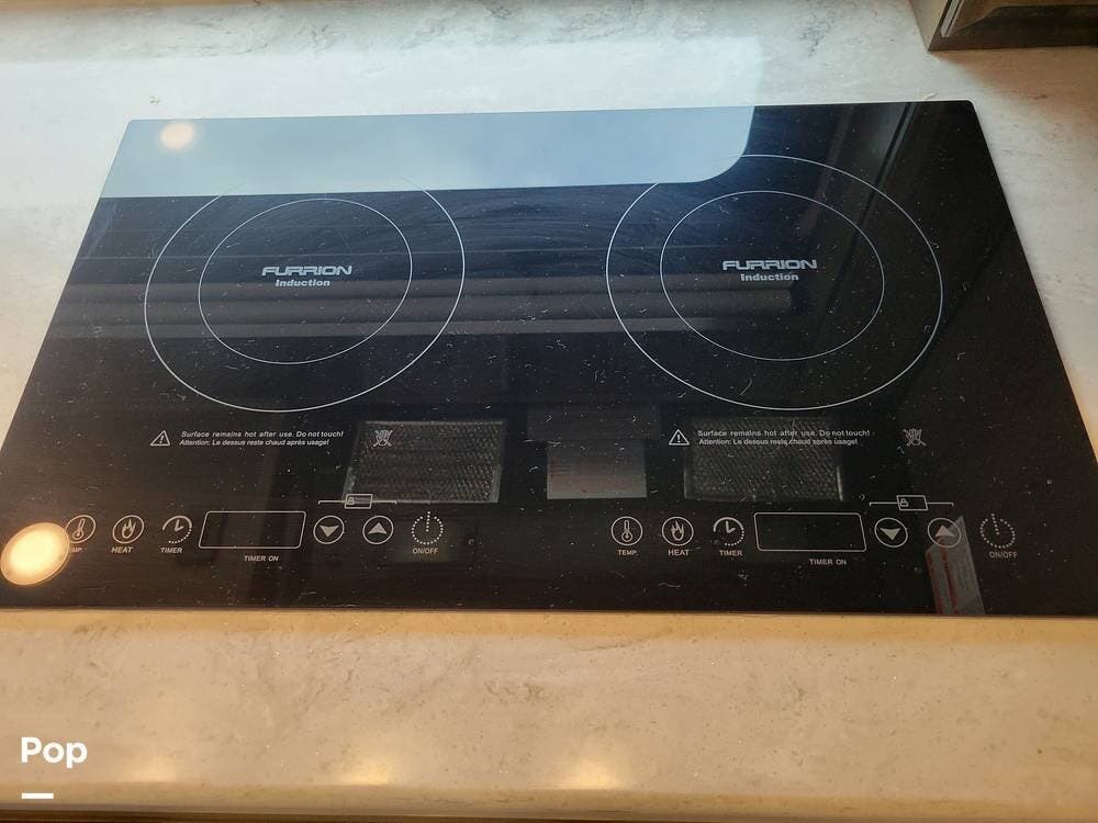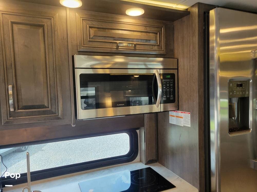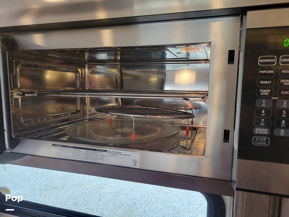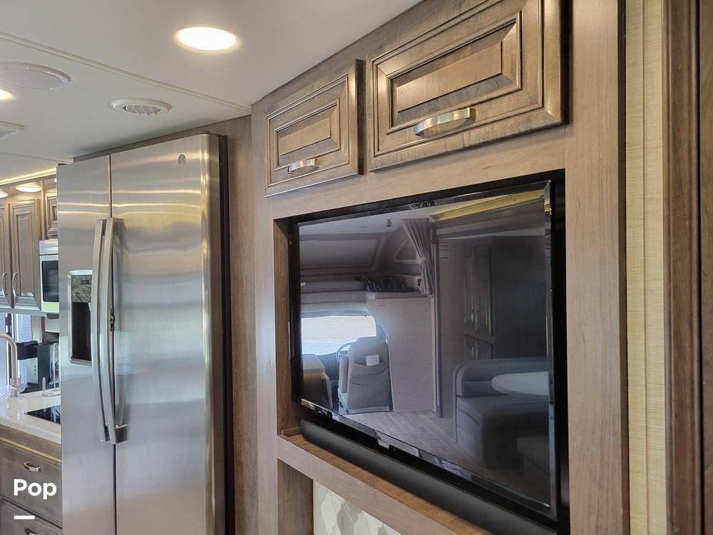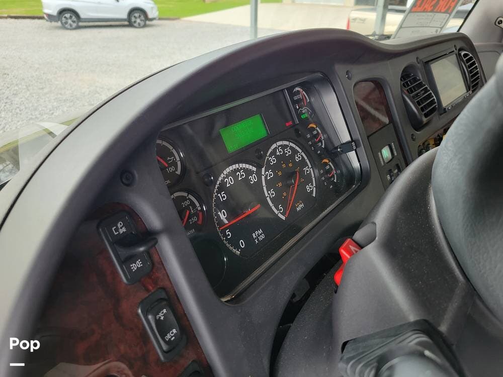 The living area is both comfy and roomy thanks to its large slide and smart layout. Features include a leather sofa, convertible dinette, large flat screen TV, fireplace, and a well-equipped kitchen with plenty of counter and cabinet space and a full-size luxury refrigerator freezer. The coach also comes with the Winegard Travler Satellite Dish.