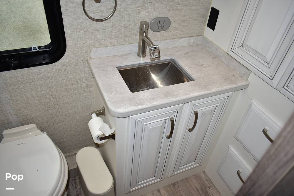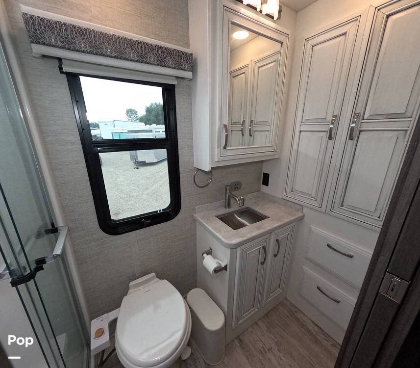 The exterior is just as impressive, featuring full-body paint, automatic leveling jacks, and ample storage space.