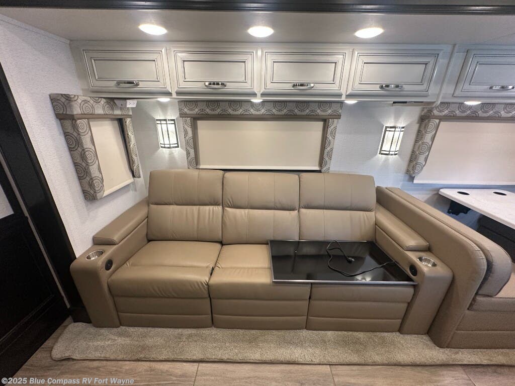 You will be quite impressed with the Jayco Seneca Prestige Super C diesel motorhome! The construction consists of a Stronghold VBL roof, floor, and sidewalls, and the premium Sikkens full-body paint is going to draw attention as you cruise down the highway. The entrance door has the industry's largest travel-view window, and you have four 6V AGM (220Ah) house batteries on a slide out tray for convenience. The JAYCOMMAND control system powered by Firefly will give you access to your coach's functions from the smartphone in your hand, and the high-gloss polished porcelain tile flooring has a heated floor mat for extra comfort. The luxury continues on with the addition of the solid-surface countertops and water filtration system, and the 9" Sony® infotainment center with Apple CarPlay® and Android Auto™ as well as the backup and sideview cameras are an excellent contribution to the front cab area.