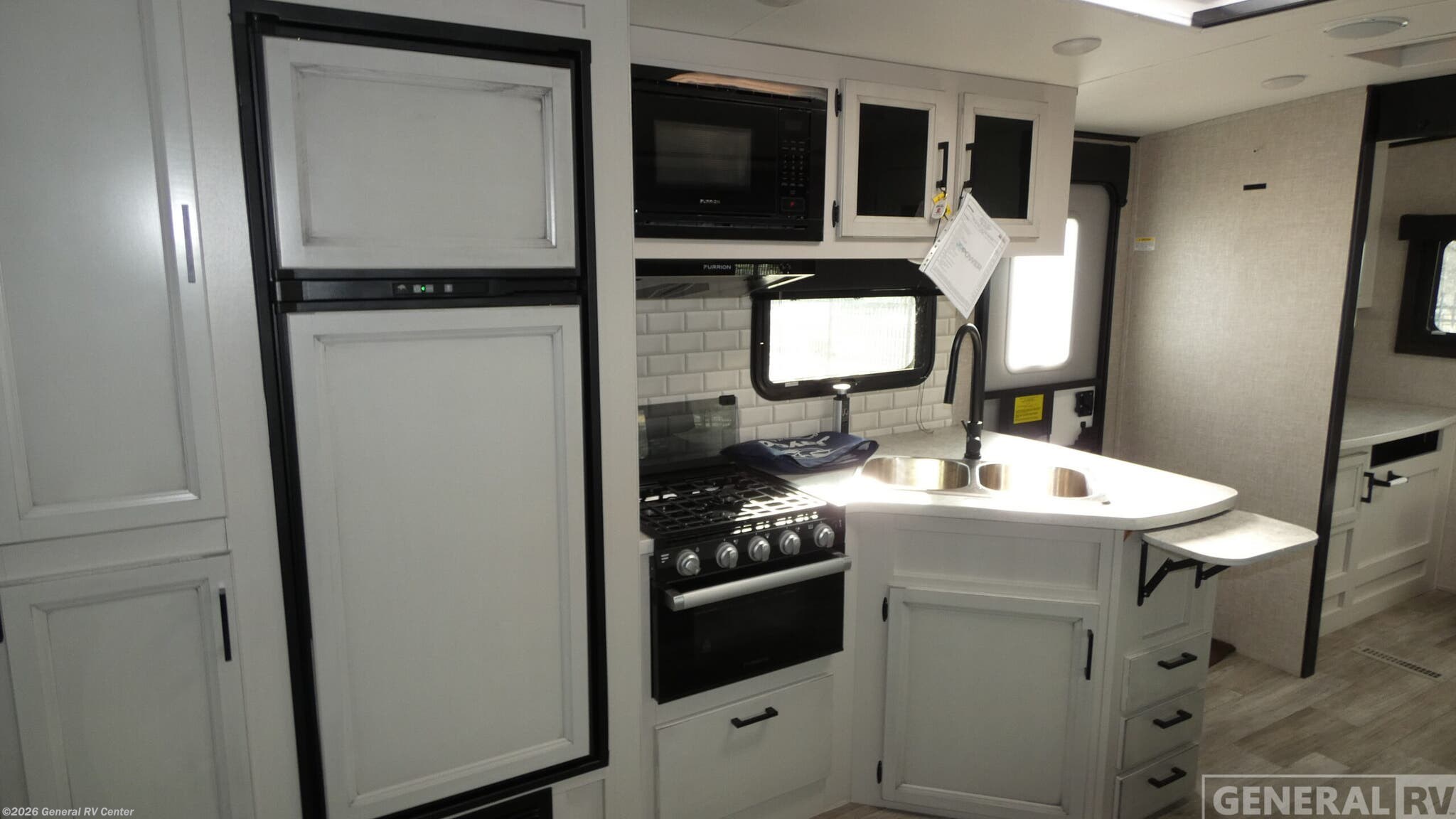 **Jayco White Hawk travel trailer 27RB highlights:** - Dual Entry Doors - Large Slide Out - Tri-Fold Sofa - Queen Bed - Flip-Up Counter Your family will love camping every other weekend in this spacious travel trailer. The full rear bath is tucked away in the back for privacy, and there are dual entry doors for convenience. When you're not outside cooking on the outdoor kitchen, gather around the U-shaped dinette for game night. You'll find the LED TV and fireplace will make this area feel more like home, and there are two pantries to store snacks and dry goods. When it comes time to call it a night, head to the front private bedroom for a great night's rest on the queen bed, and you'll find two wardrobes plus a closet to keep your clothes tidy. The lightweight White Hawk travel trailers by Jayco will blow you away with their roomy interiors, luxurious amenities, and durable construction. The Magnum Truss Roof System can withstand 50% more weight than the competition, and the Stronghold VBL lamination is the lightest, yet strongest in the industry. Each model includes the JAYCOMMAND "Smart RV" system with a tire pressure monitor system, plus American-made Goodyear tires for maximum durability and carrying capacity. You will love the sleek look of the front molded fiberglass cap with an automotive windshield and blue LED accent lighting, along with the frameless windows and automotive-style aluminum rims. The White Hawk travel trailers also include an arched interior ceiling, a kitchen skylight with a shade, residential vinyl flooring with cold crack resistance, and an electric fireplace.