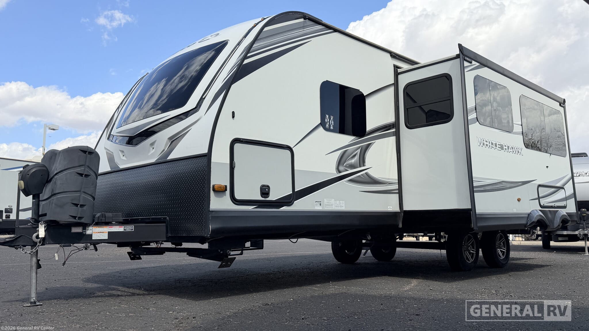 **Jayco White Hawk travel trailer 27RB highlights:** - Dual Entry Doors - Large Slide Out - Tri-Fold Sofa - Queen Bed - Flip-Up Counter Your family will love camping every other weekend in this spacious travel trailer. The full rear bath is tucked away in the back for privacy, and there are dual entry doors for convenience. When you're not outside cooking on the outdoor kitchen, gather around the U-shaped dinette for game night. You'll find the LED TV and fireplace will make this area feel more like home, and there are two pantries to store snacks and dry goods. When it comes time to call it a night, head to the front private bedroom for a great night's rest on the queen bed, and you'll find two wardrobes plus a closet to keep your clothes tidy. The lightweight White Hawk travel trailers by Jayco will blow you away with their roomy interiors, luxurious amenities, and durable construction. The Magnum Truss Roof System can withstand 50% more weight than the competition, and the Stronghold VBL lamination is the lightest, yet strongest in the industry. Each model includes the JAYCOMMAND "Smart RV" system with a tire pressure monitor system, plus American-made Goodyear tires for maximum durability and carrying capacity. You will love the sleek look of the front molded fiberglass cap with an automotive windshield and blue LED accent lighting, along with the frameless windows and automotive-style aluminum rims. The White Hawk travel trailers also include an arched interior ceiling, a kitchen skylight with a shade, residential vinyl flooring with cold crack resistance, and an electric fireplace.