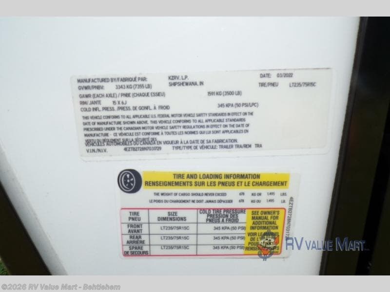 Request More Info on this 2022 K-Z Confluence 25RL Offered for sale by RV Value Mart - Behtlehem