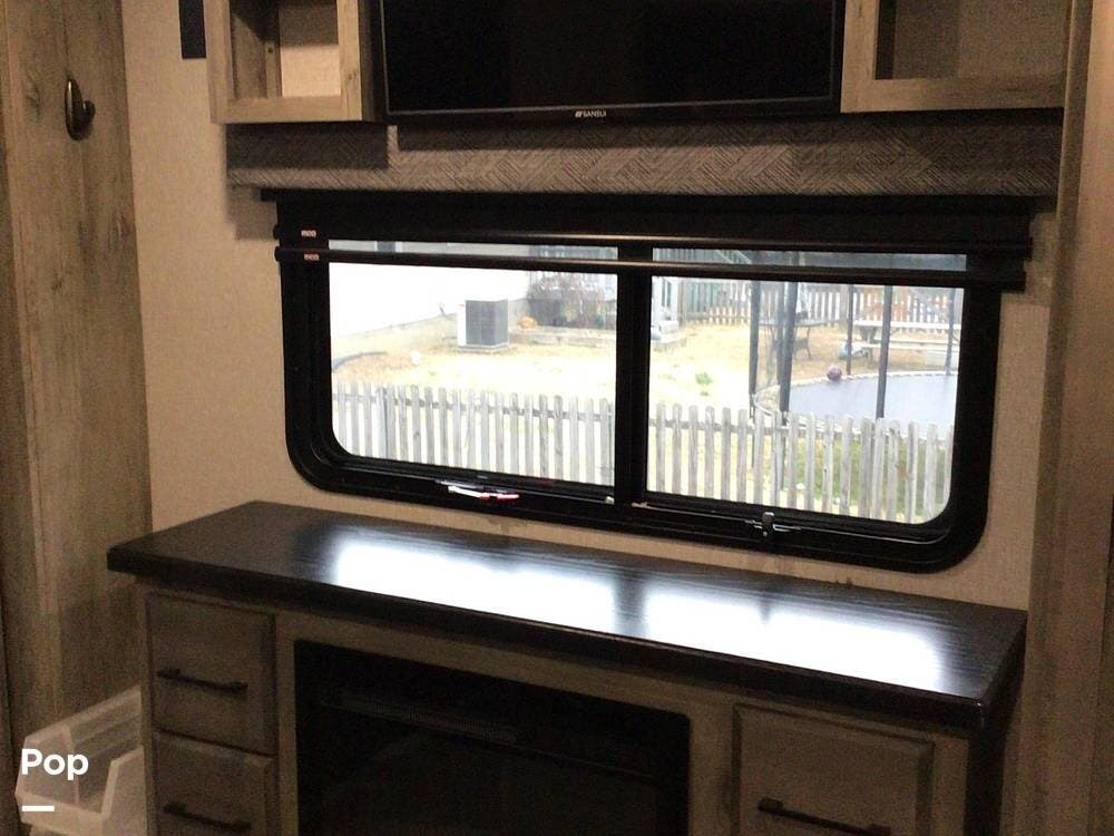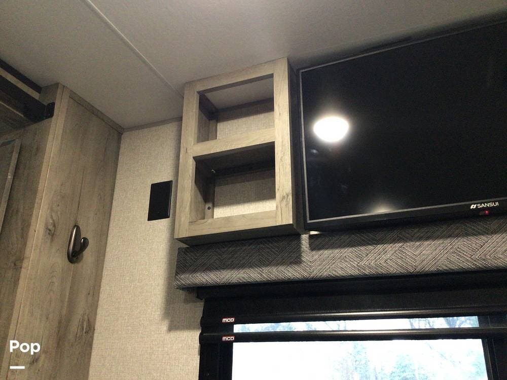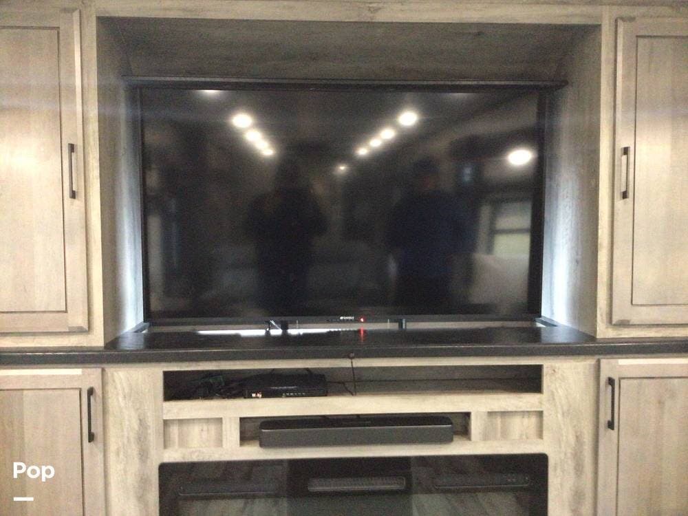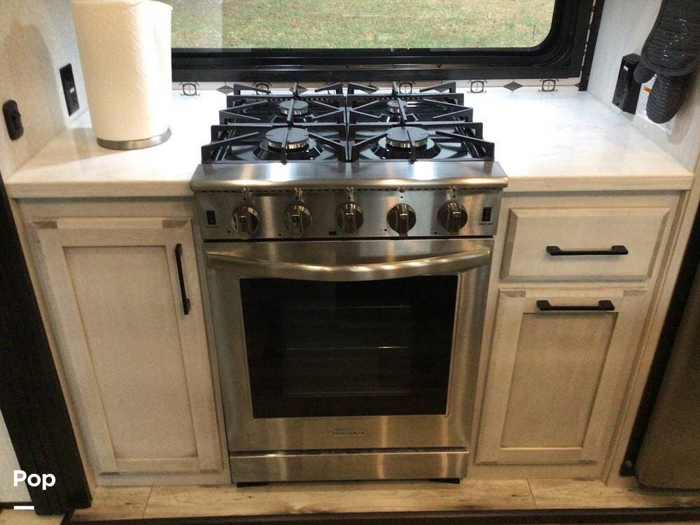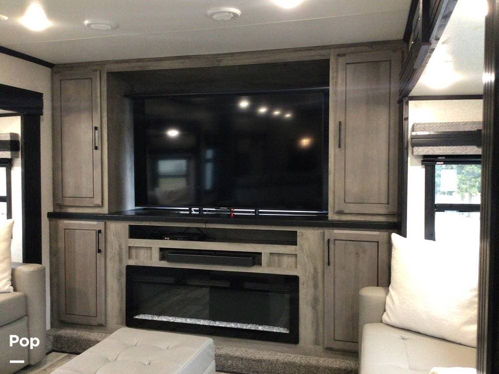 With its ample space created by five slide-outs and a range of deluxe features, including a fully equipped kitchen, a cozy fireplace, and an electric tilt king-size bed, it provides all the conveniences of home while enabling year-round travel in comfort.