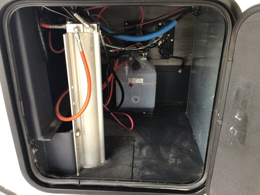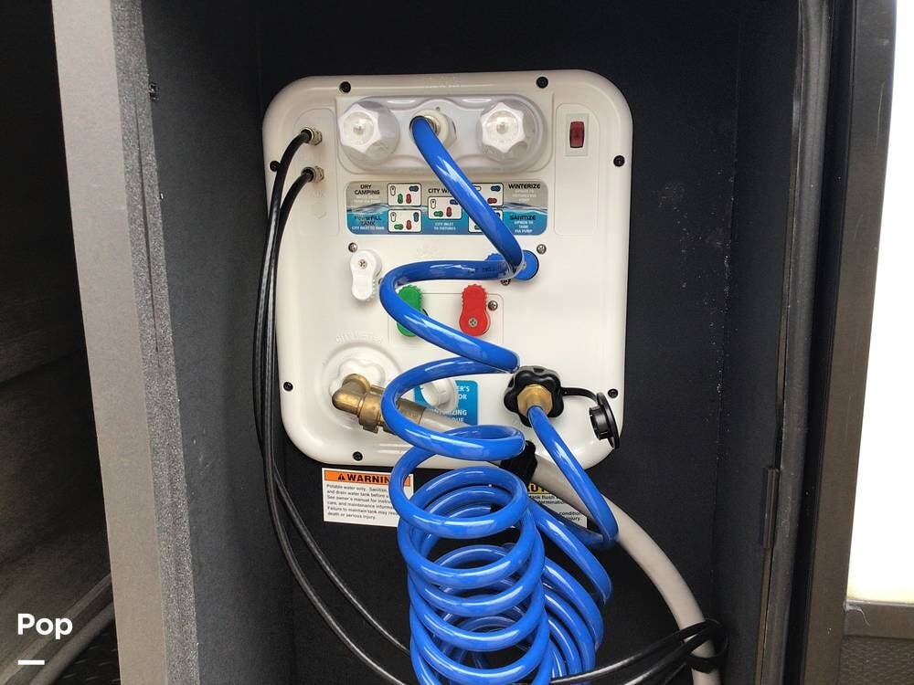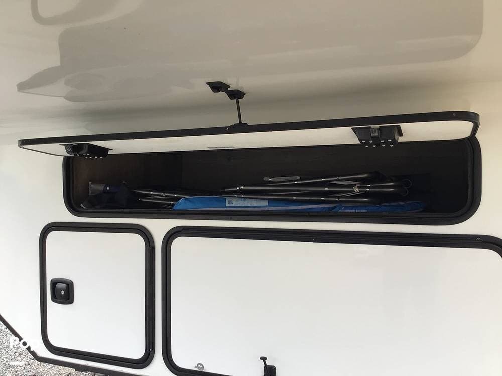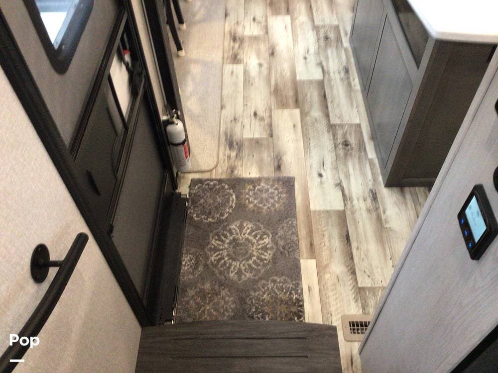The KZ Engage powered by OneControl system, accessible via a 7-inch touchscreen or a mobile app, allows you to monitor tank/battery levels and control lights, slide-outs, and awnings.