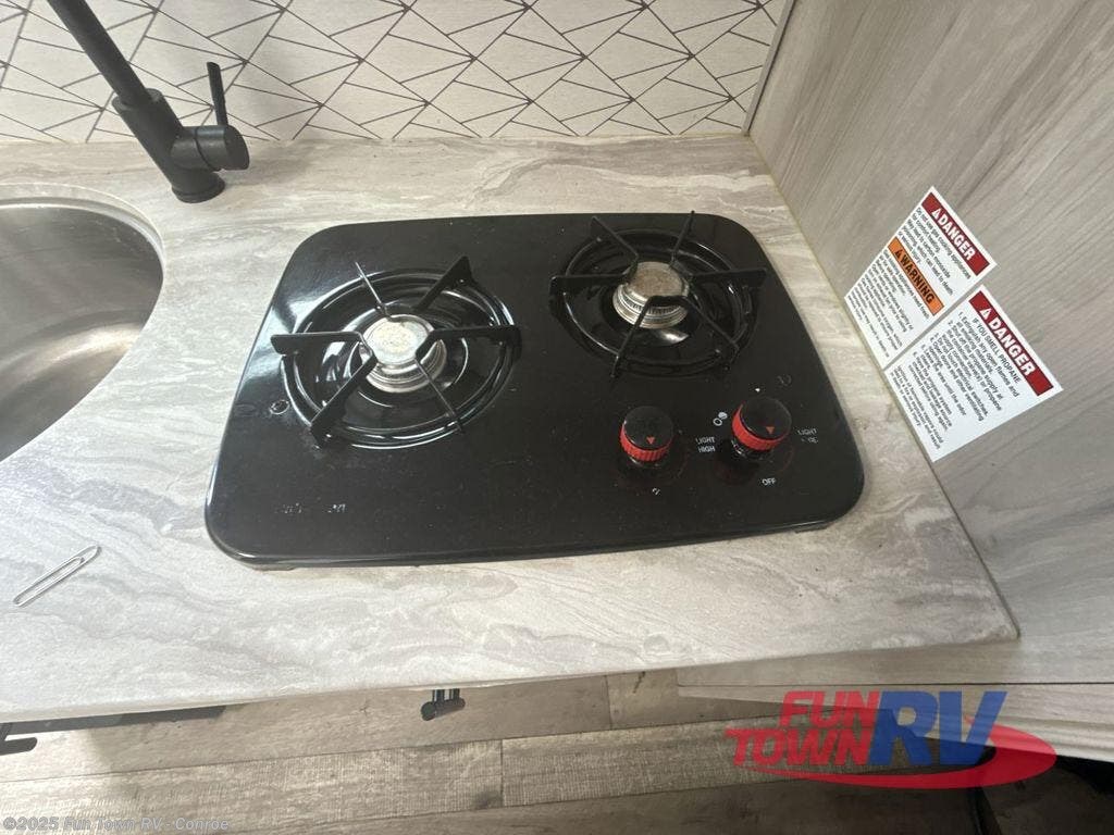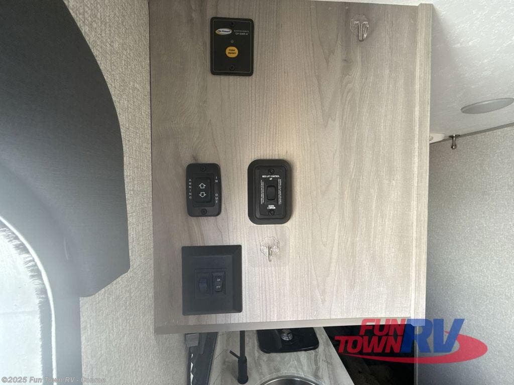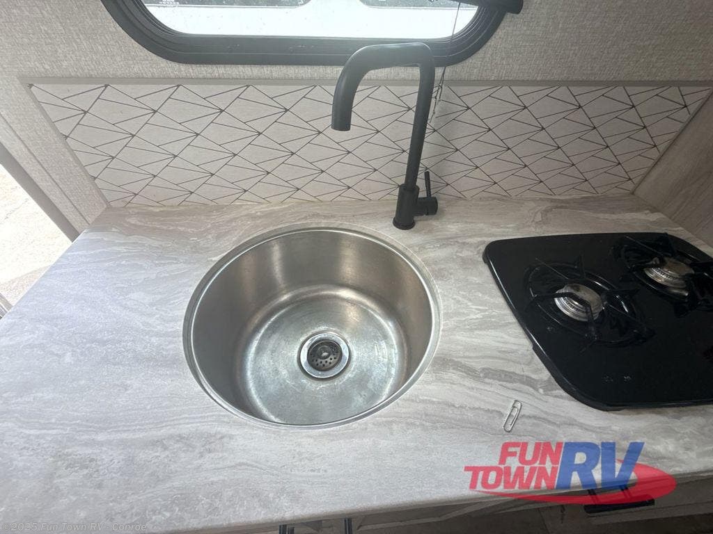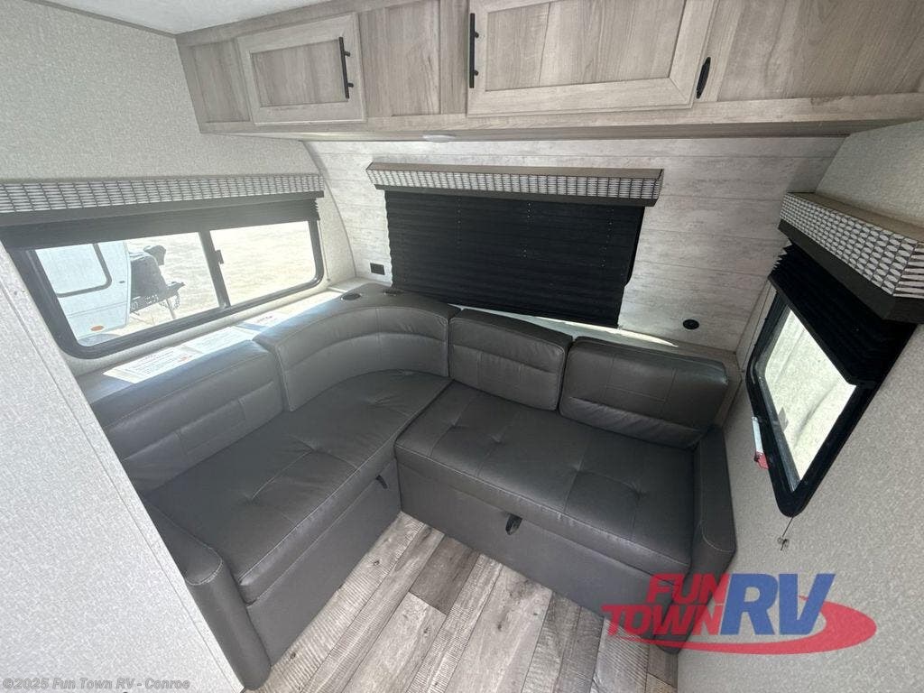 This travel trailer is the perfect couple's getaway! It has a rear 54" x 80" power bed to enjoy a good night's rest, a private shower and toilet to freshen up, and a hatch door to let in some fresh air and look out at your beautiful scenery. You can prepare your best meals with the two burner cooktop, the 8 cu. ft. 12V refrigerator, and the microwave. The front "L" lounge comes with a table, a hidden ottoman, and a storage area behind it, plus it can be an extra sleeping space for a guest. The 14' power awning will protect you rain or shine and comes with a LED light strip to highlight the good times!
