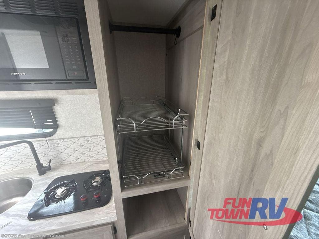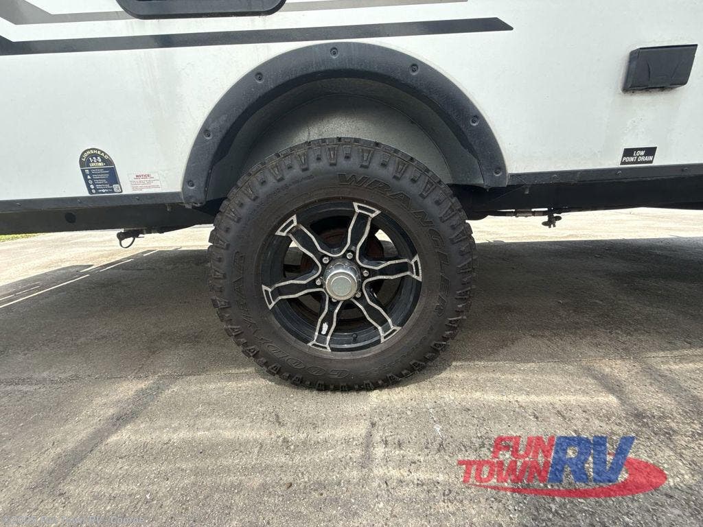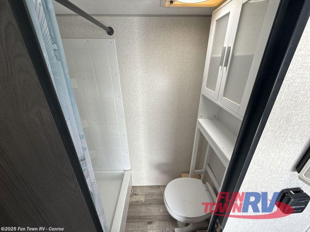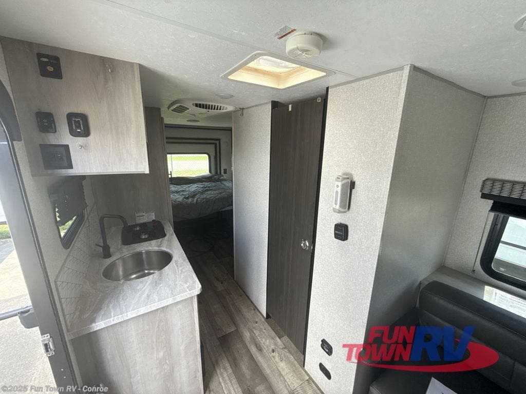 This travel trailer is the perfect couple's getaway! It has a rear 54" x 80" power bed to enjoy a good night's rest, a private shower and toilet to freshen up, and a hatch door to let in some fresh air and look out at your beautiful scenery. You can prepare your best meals with the two burner cooktop, the 8 cu. ft. 12V refrigerator, and the microwave. The front "L" lounge comes with a table, a hidden ottoman, and a storage area behind it, plus it can be an extra sleeping space for a guest. The 14' power awning will protect you rain or shine and comes with a LED light strip to highlight the good times!