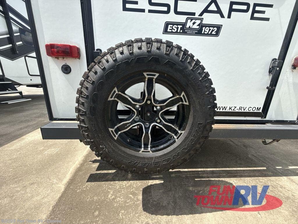 Each one of these KZ Escape ultra lightweight travel trailers were built for campers who want an ultimate adventure! An aerodynamic front profile with front windshield makes them easier to tow, and the white exterior fiberglass with fender skirts will turn heads down the highway. A 3/8" fully walkable roof with Dicor Tufflex PVC roofing membrane and diamond plate rock guard will protect your unit. The interiors are decorated with beautiful rail style Amish-crafted cabinet doors with modern handles, seamless countertops, residential grade linoleum throughout, and pleated shades covering the tinted windows. The mandatory KZ Convenience package includes interior control switches on overhead end cabinets, a friction hinge entry door with shade prep, and an omnidirectional HDTV antenna with WiFi prep. Come find the right one for you today!