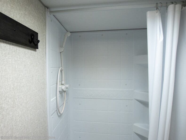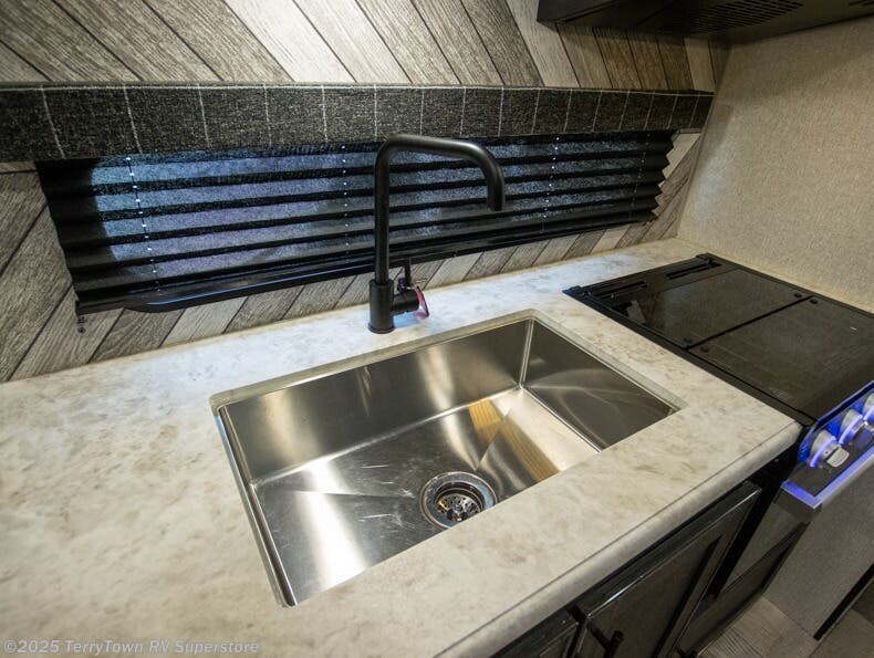 Each Sportsmen SE travel trailer and toy hauler by KZ is constructed with KZ exclusive tough shield exterior metal, one-piece seamless walk-on Tufflex roofing material, and a fully enclosed, insulated, and heated underbelly. You will appreciate the RV Airflow System that optimizes the airflow in your A/C system for a more evenly and quietly-cooled trailer. Some of the exterior conveniences you'll find are the four stabilizer jacks, nitrogen-filled tires, an exterior shower, and a Leash Latch with a bonus beverage opener. You'll feel right at home with residential-grade linoleum, a black residential kitchen faucet, large overhead cabinets, a shower surround, and much more!