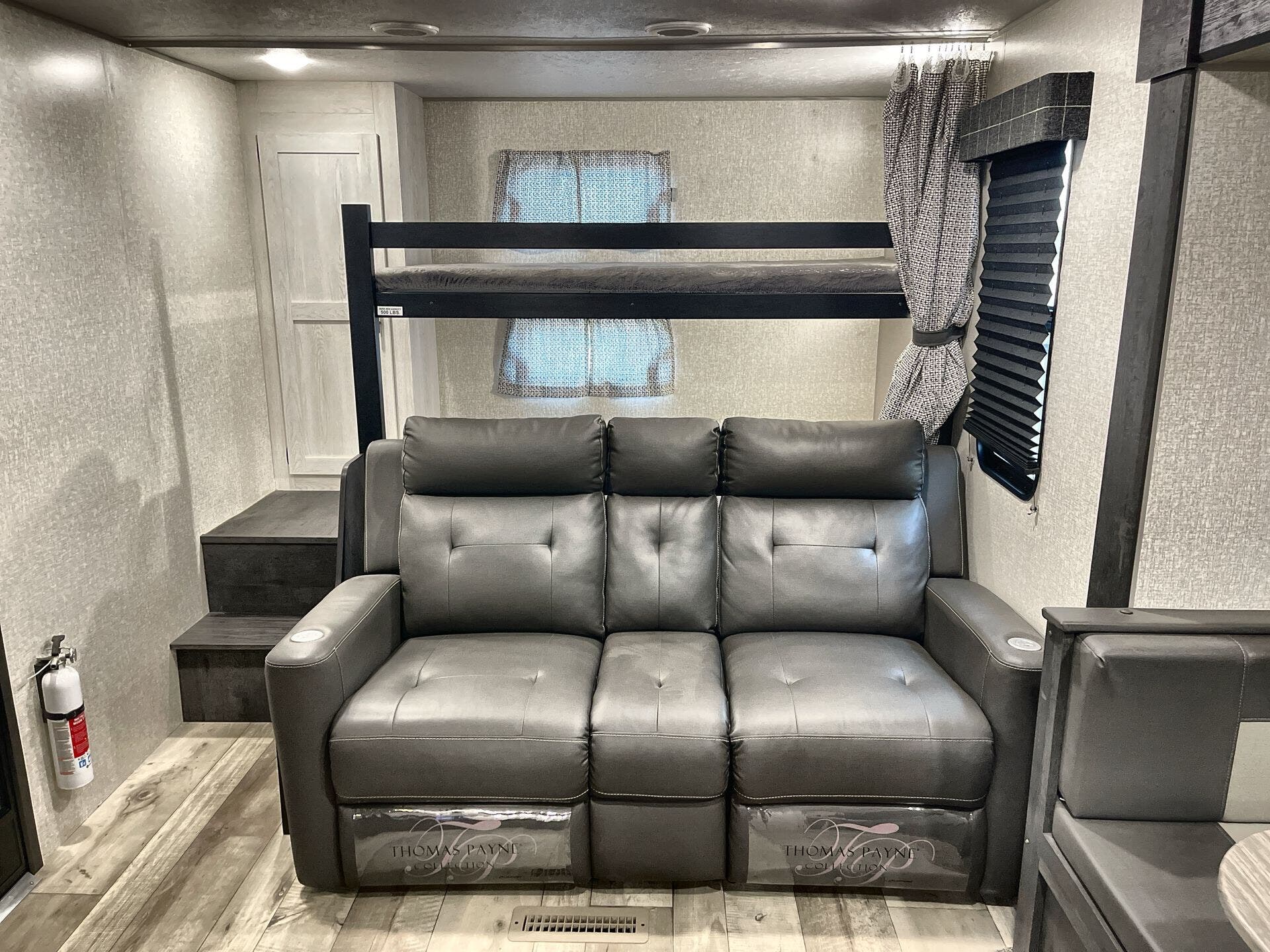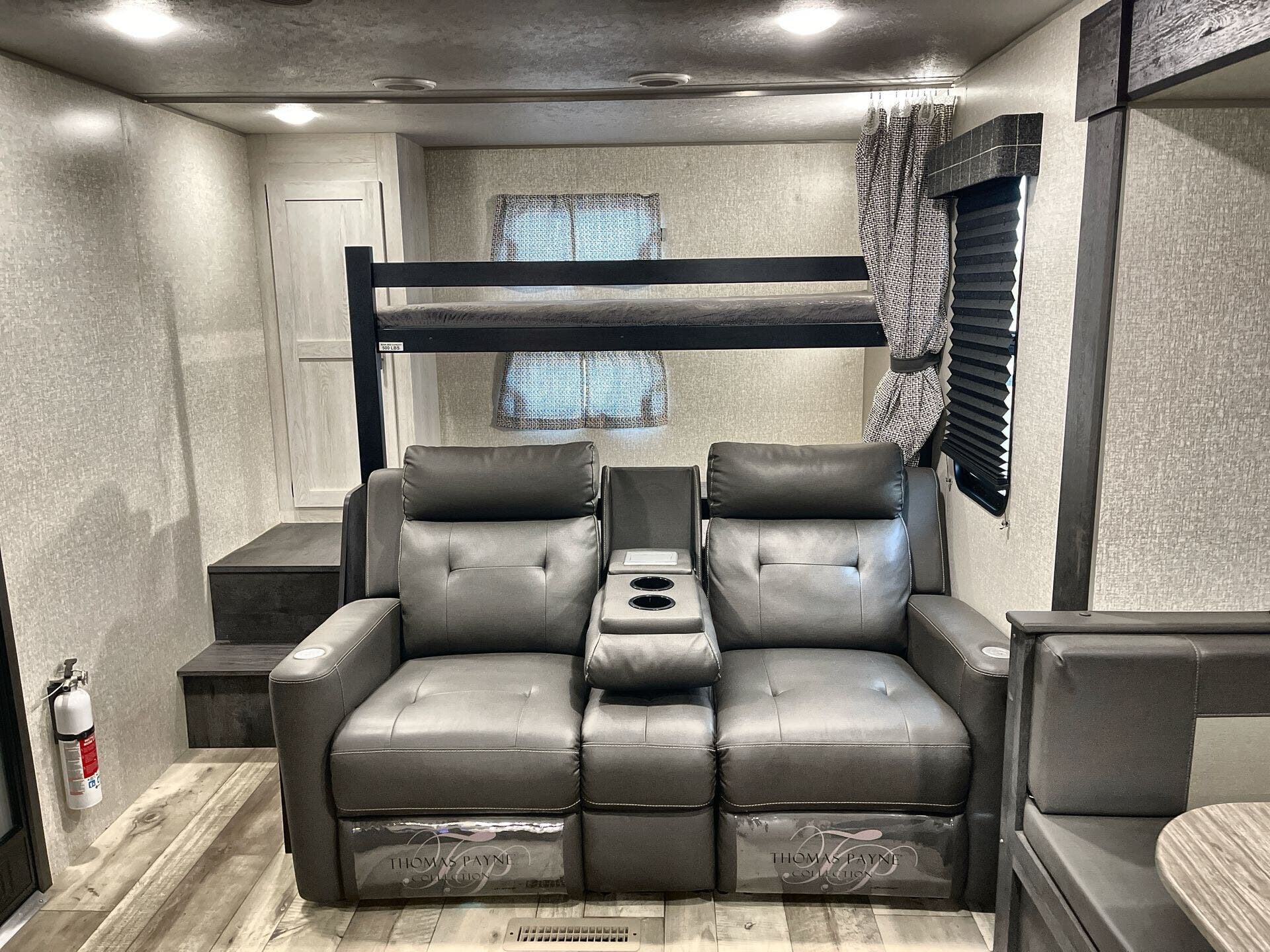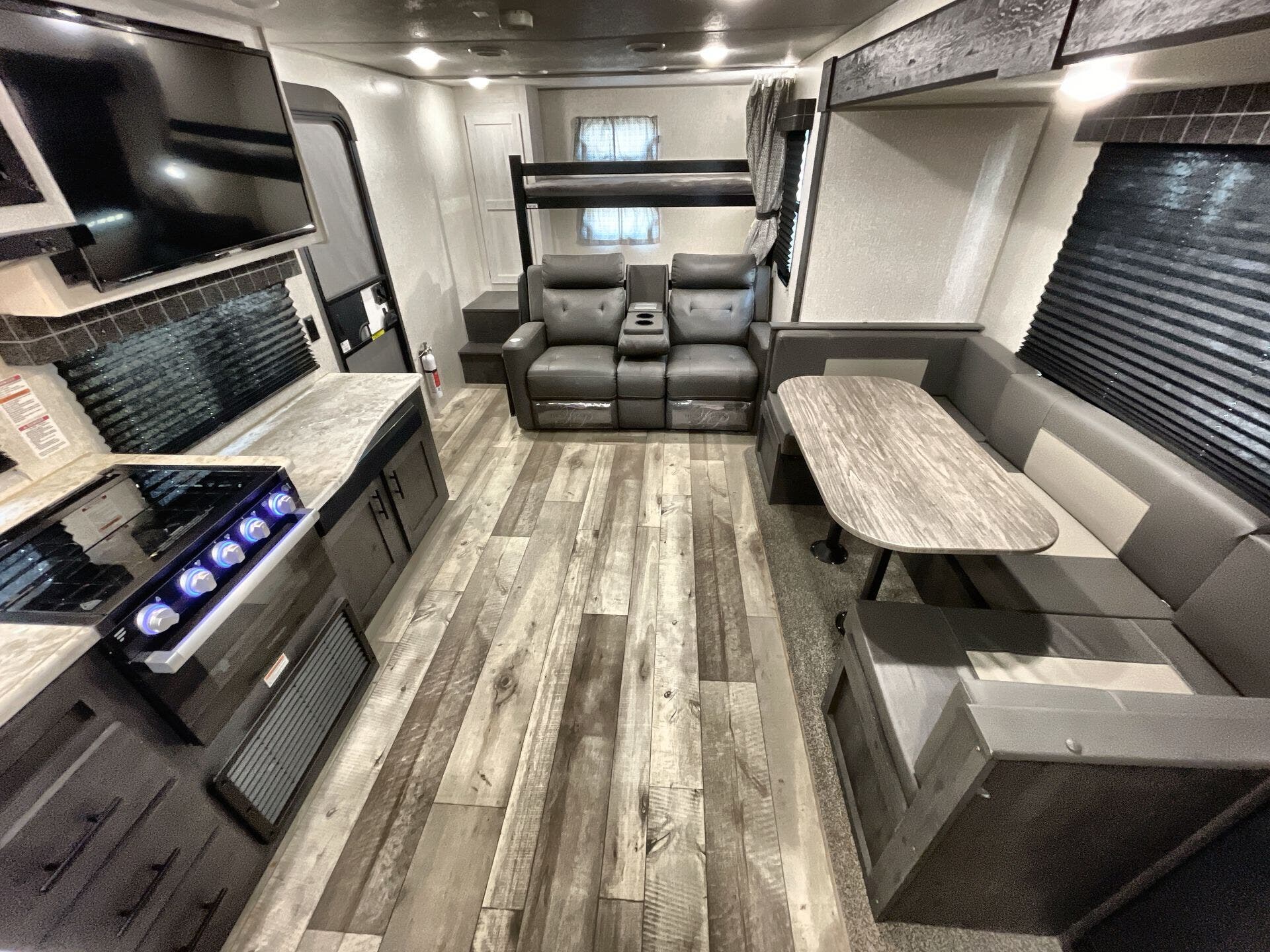 The 281BHSE floorplan offers flexible living for families and groups. Features include bunk beds, a front bedroom for privacy, a mid bath, and a rear entertainment area complemented by a rear dinette and a rear kitchen. A single slide-out expands the central living space when parked, delivering an open, livable feel without overhang on the road. Built with practical travel trailer design, this layout prioritizes comfort, storage, and easy access to essentials during long trips or weekend excursions.