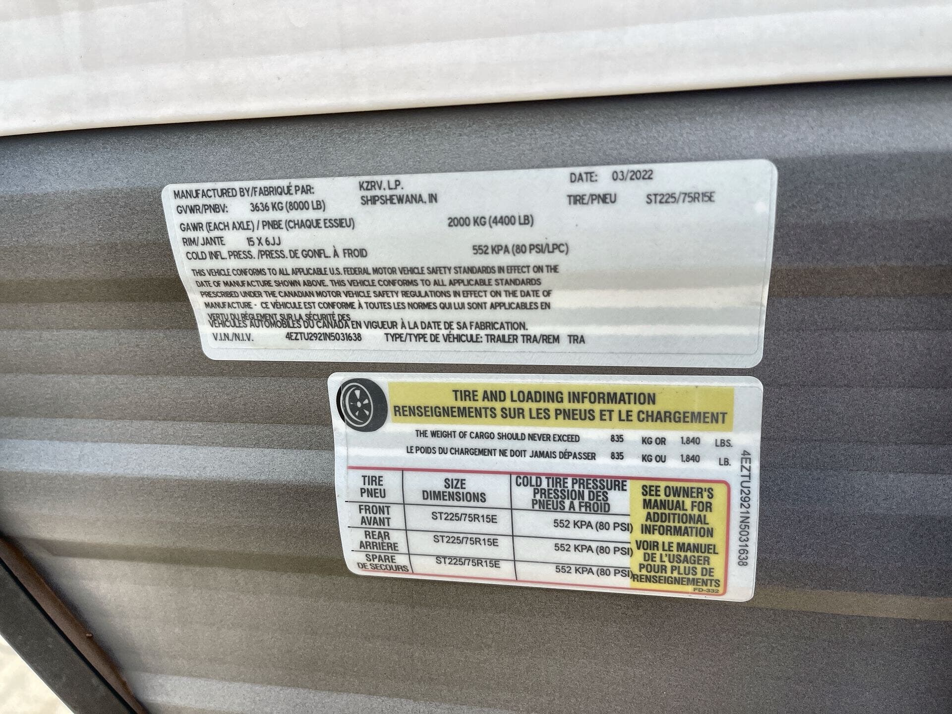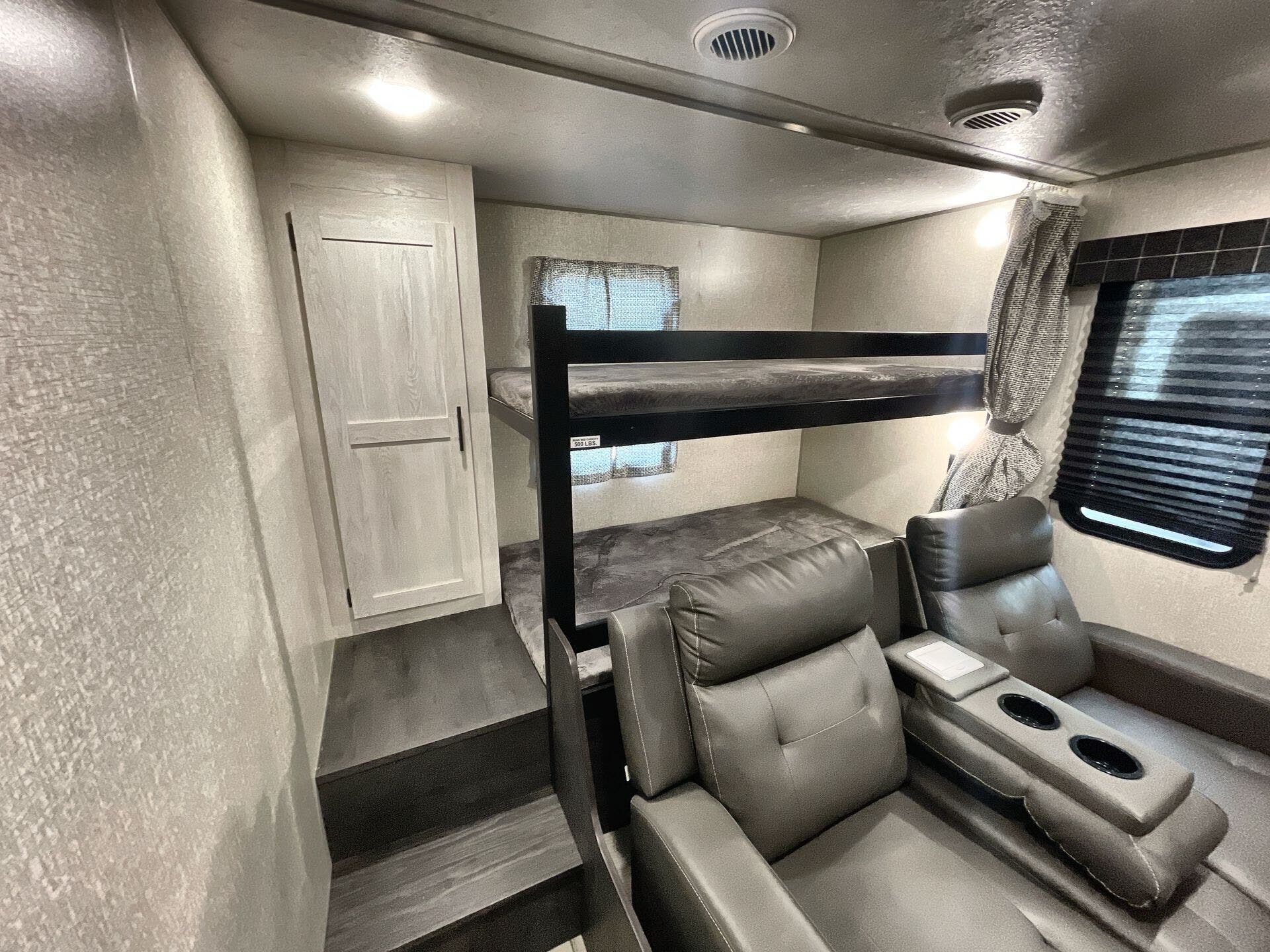 This 2022 K-Z Sportsmen SE 281BHSE is a family-friendly towable RV that blends practical bunk-bed sleeping arrangements with a versatile rear kitchen and dinette layout. Built on a sturdy chassis with a balanced GVWR of 8,000 pounds, this travel trailer is designed to handle weekend getaways and longer adventures with ease. At 32 feet 7 inches in length, and 8 feet 0 inches wide with a height of 10 feet 8 inches, it provides comfortable interior space while remaining easy to tow behind a mid-size SUV or pickup. This model, stock number 15488A, embodies the convenience and reliability campers expect from a modern recreational vehicle.