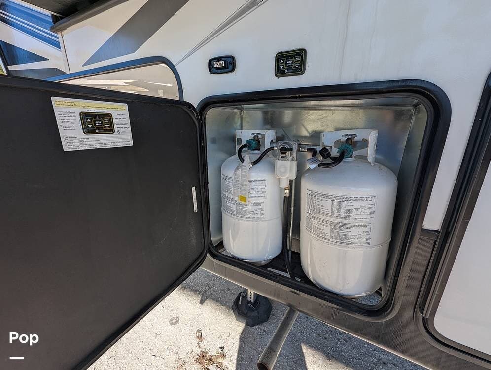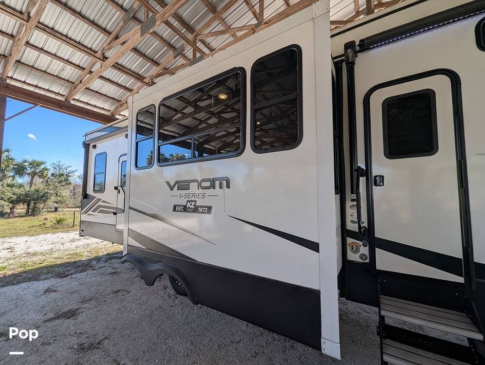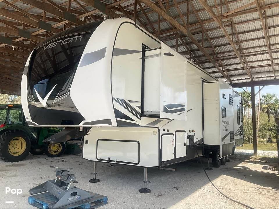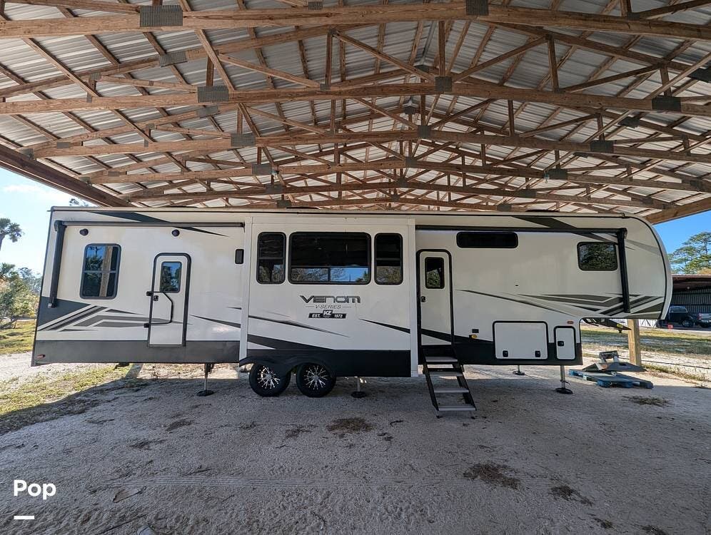 Outside the RV there is a nice awning to relax under to enjoy the days View! There is a All Seasons package for year around camping. The tires were upgraded to 14 ply tires for safe travel. This Venom was lightly used and ready to travel!