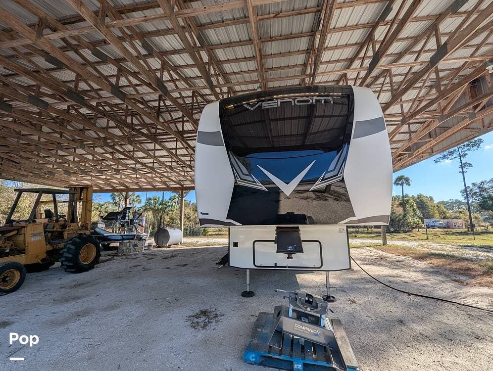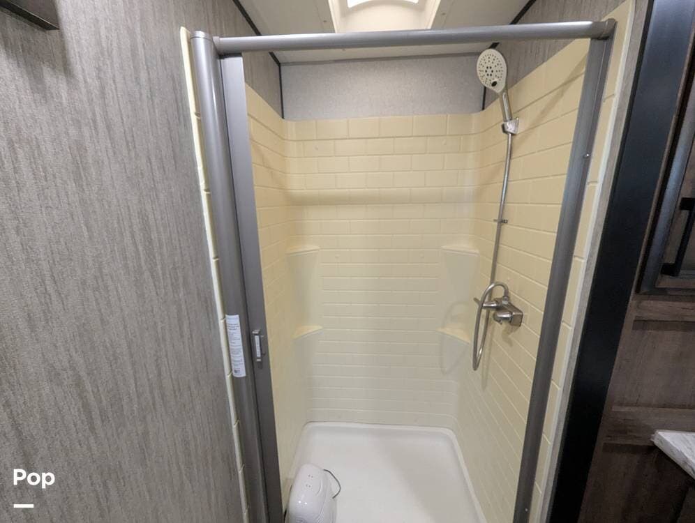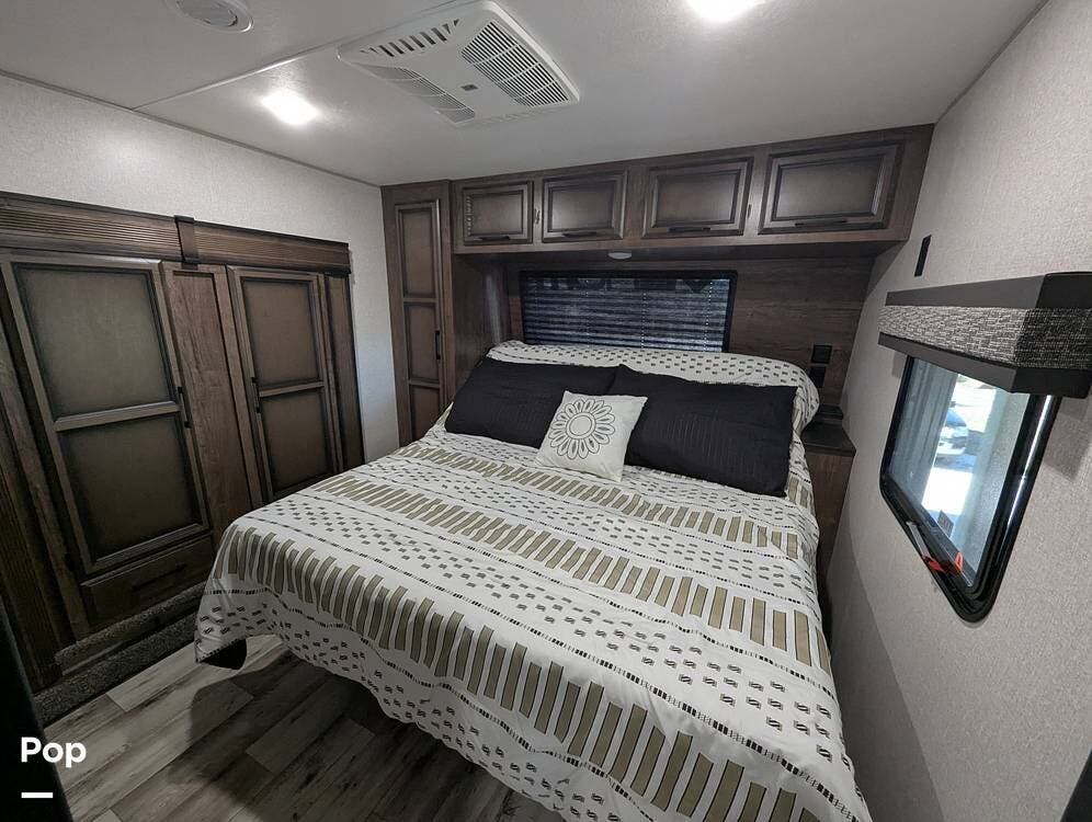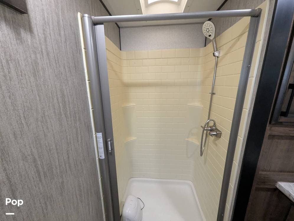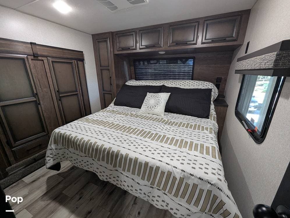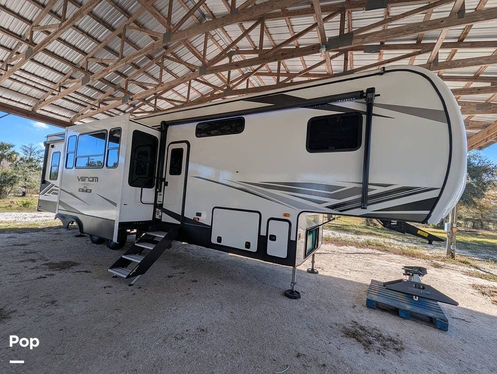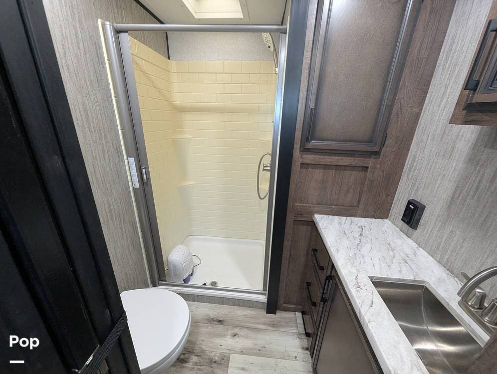 This 2022 Venom has a King-size adjustable bed with lots of storage, a washer and dryer hook-up. The bathroom has a nice-sized shower.