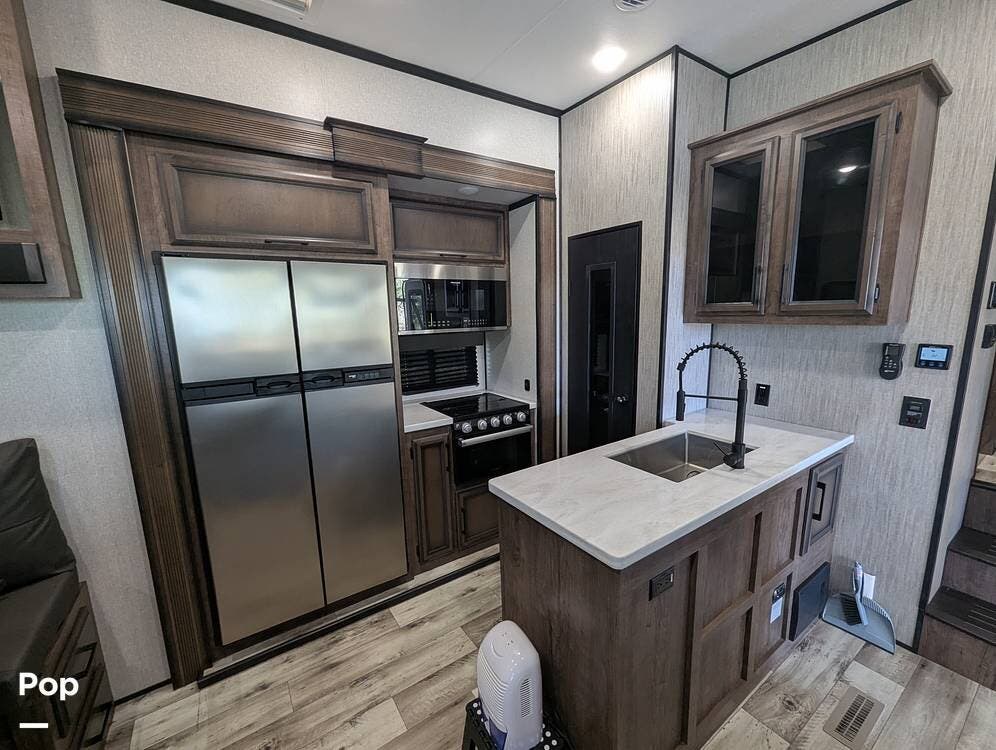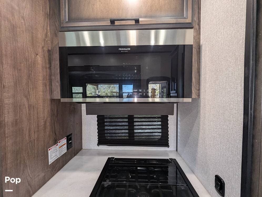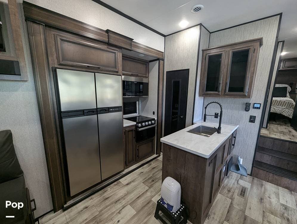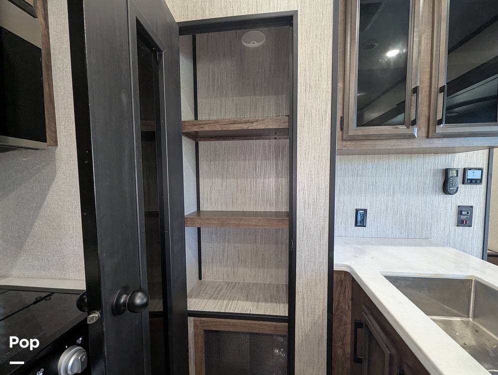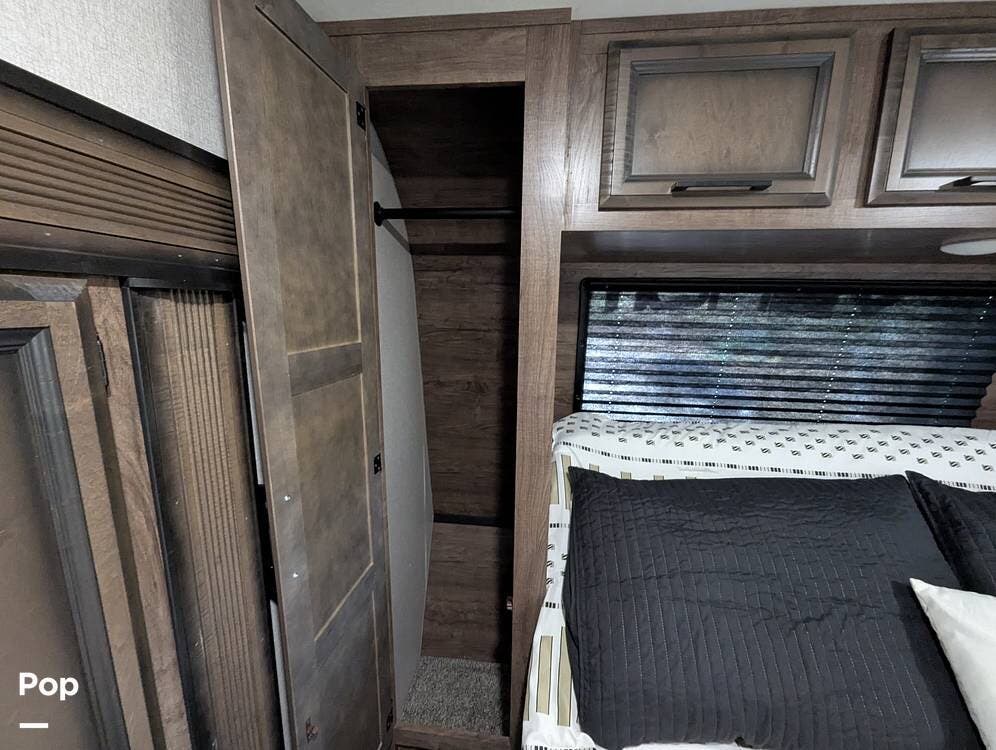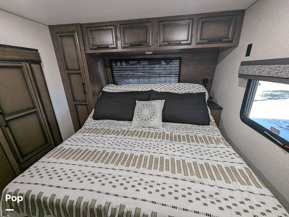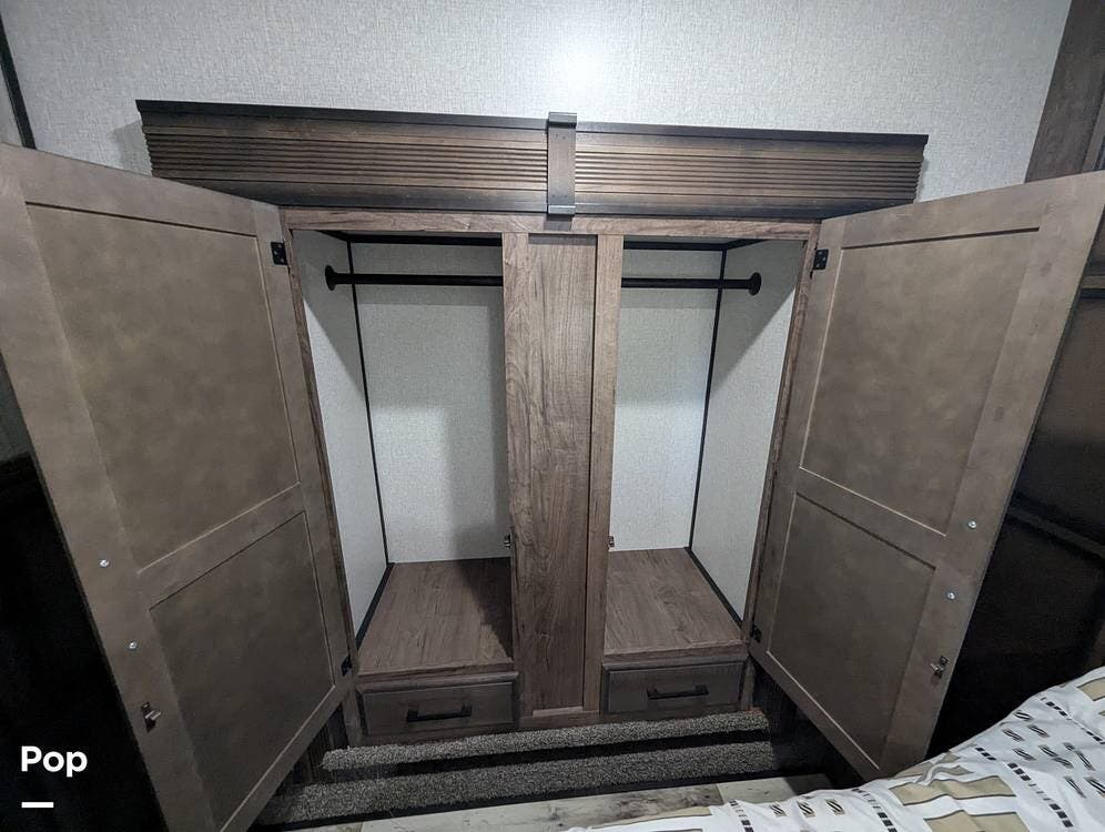 This 2022 Venom has a King-size adjustable bed with lots of storage, a washer and dryer hook-up. The bathroom has a nice-sized shower.