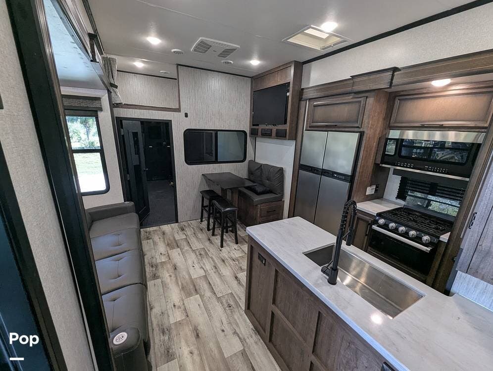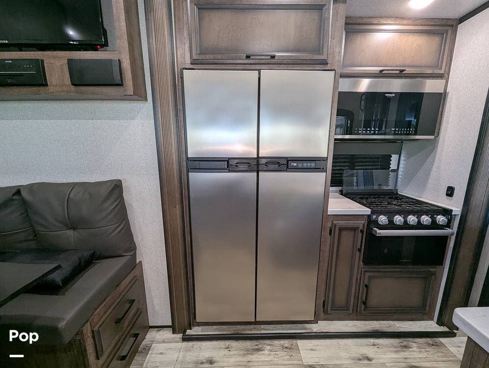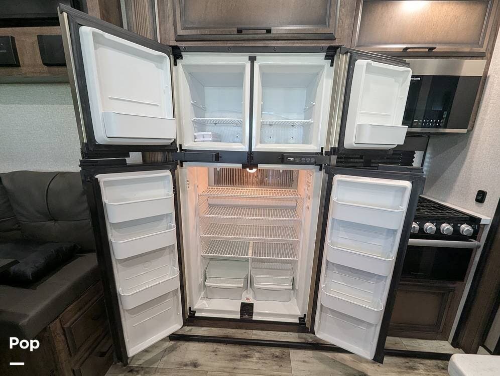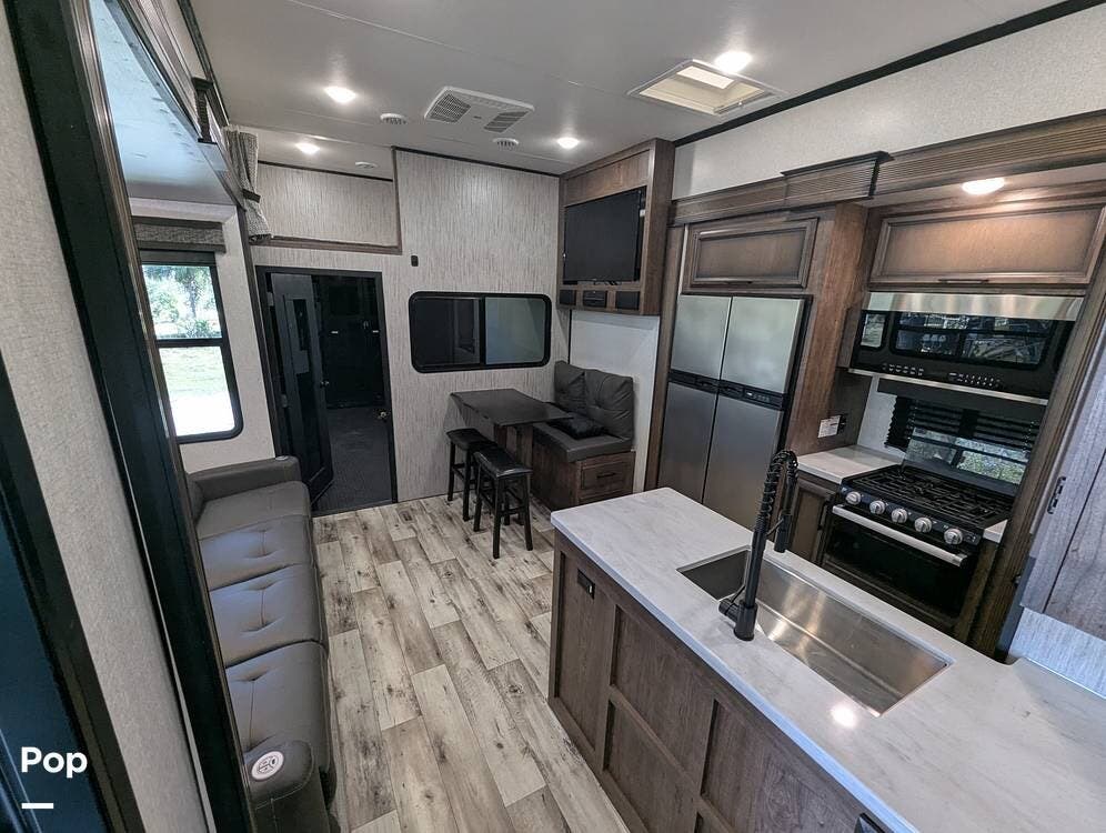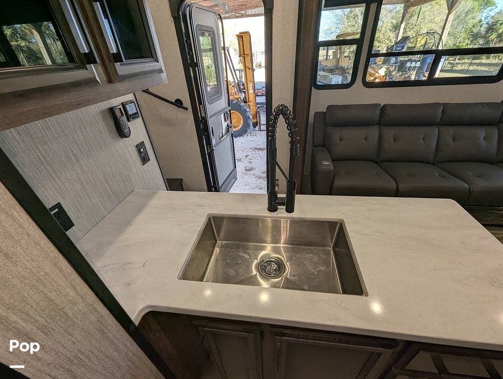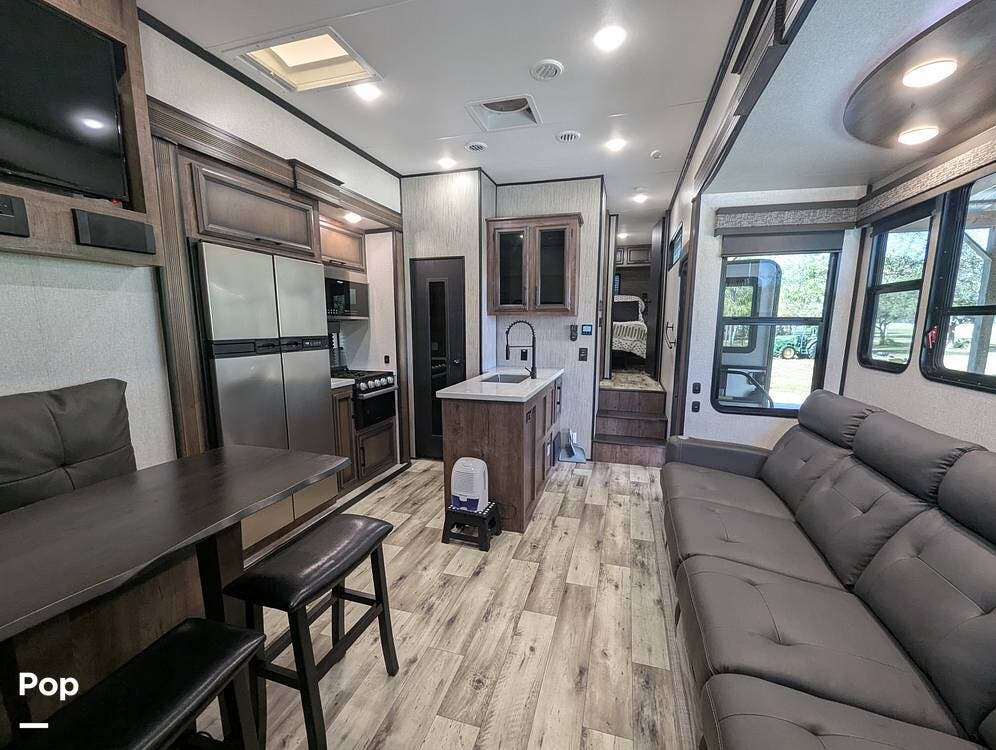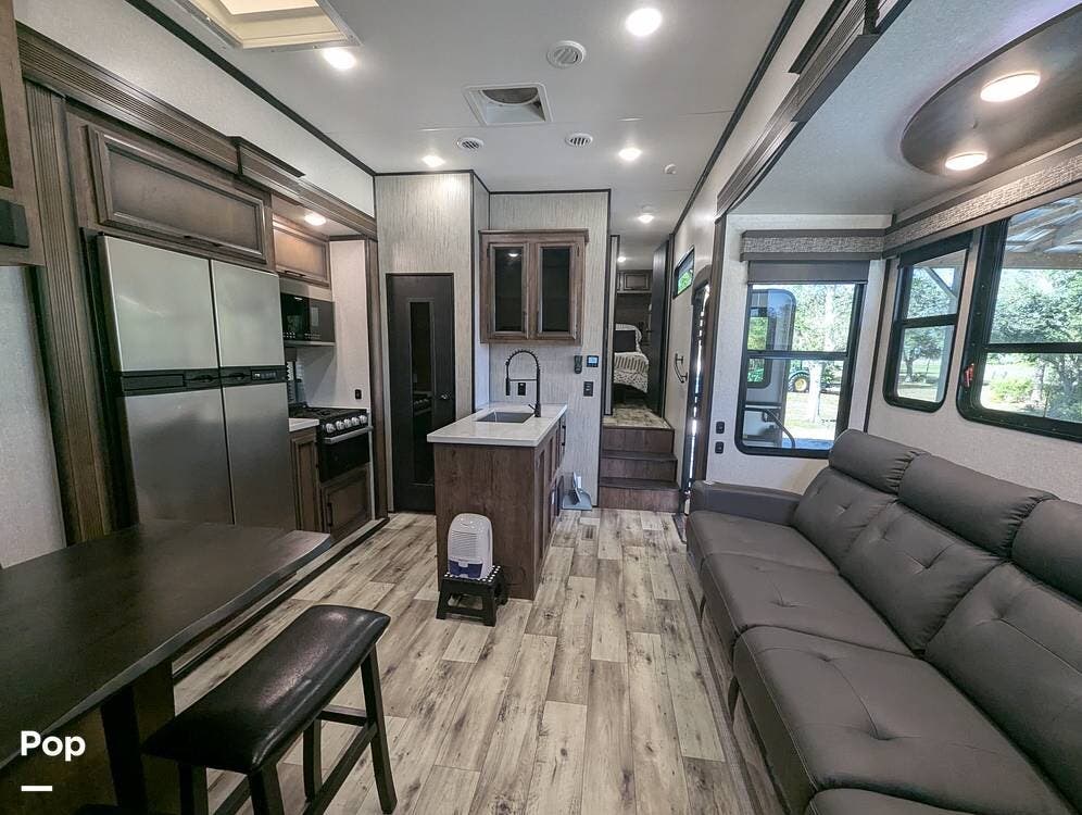 This 2022 Venom has a King-size adjustable bed with lots of storage, a washer and dryer hook-up. The bathroom has a nice-sized shower.