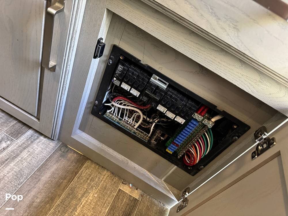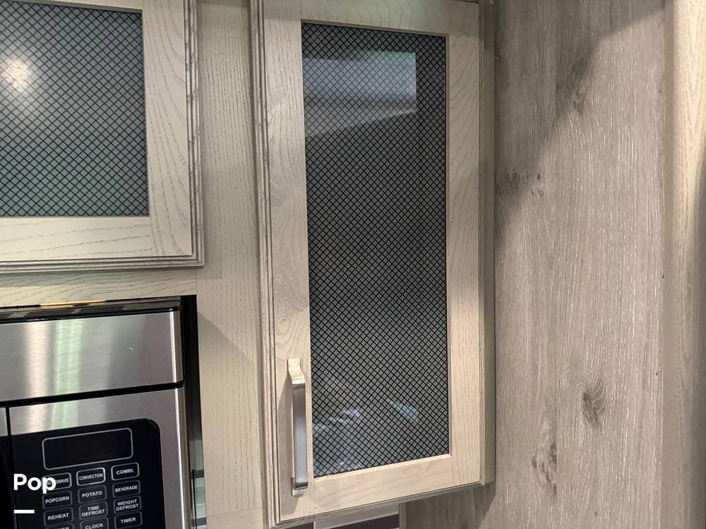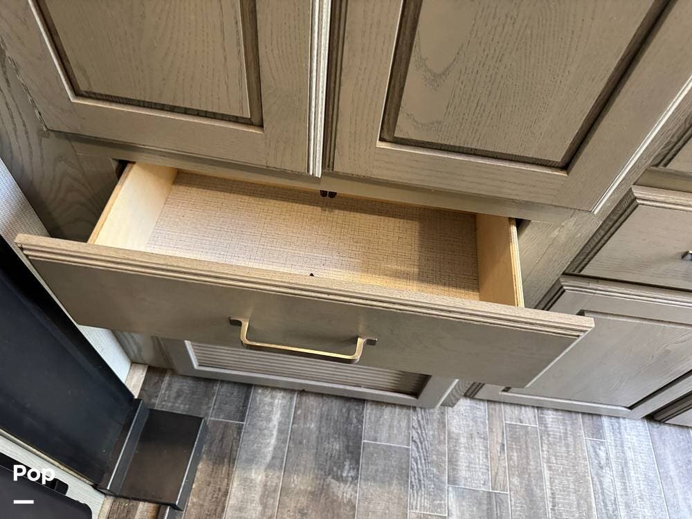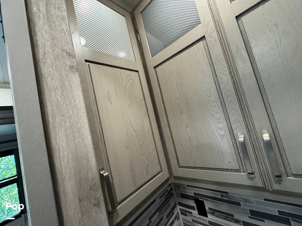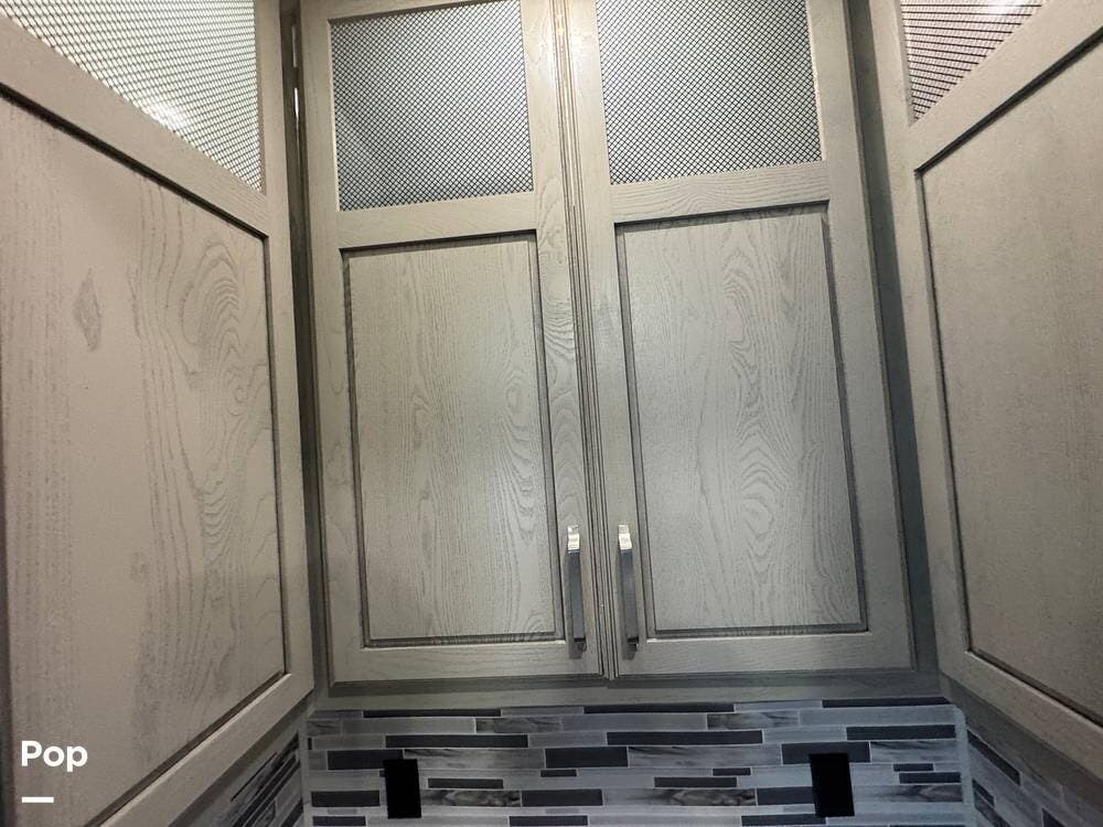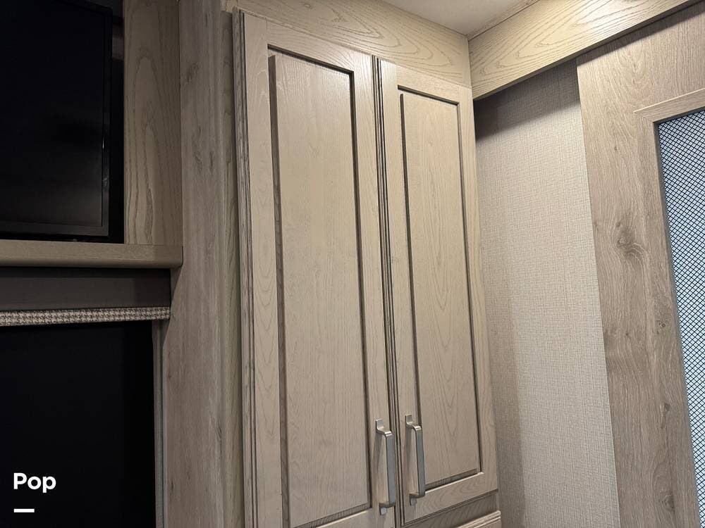 Other features of the camper include a 6-point hydraulic auto-leveling system, two large power awnings for outdoor shade, dual 30 lb propane tanks for extended camping, and a massive pass-through storage for all your gear.