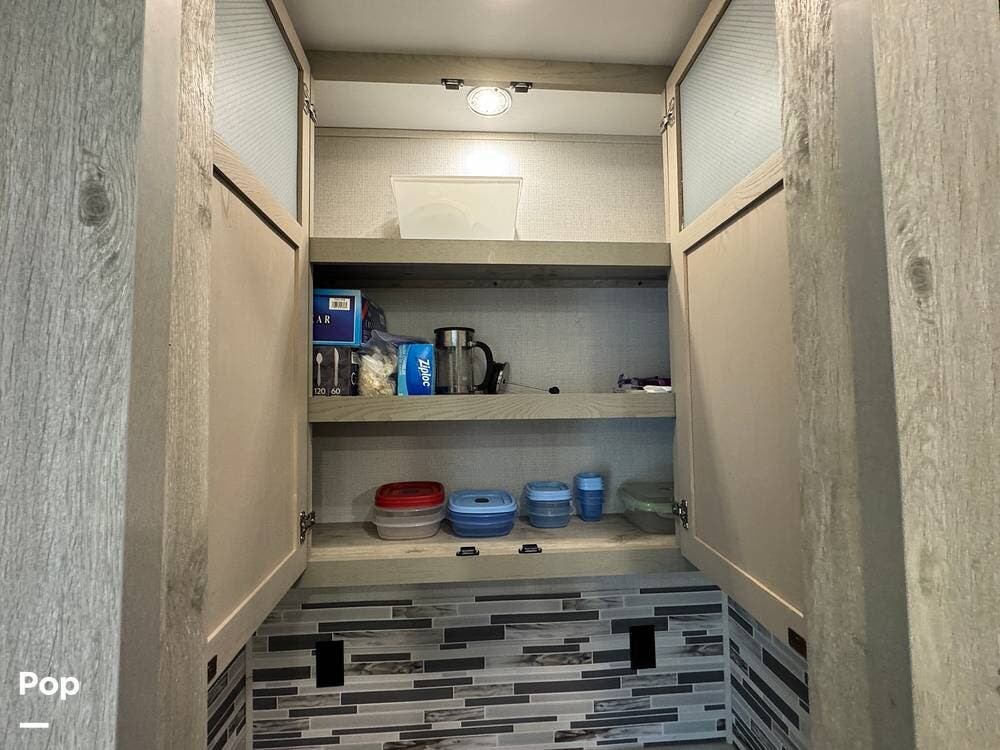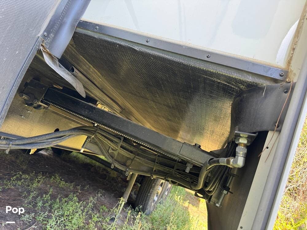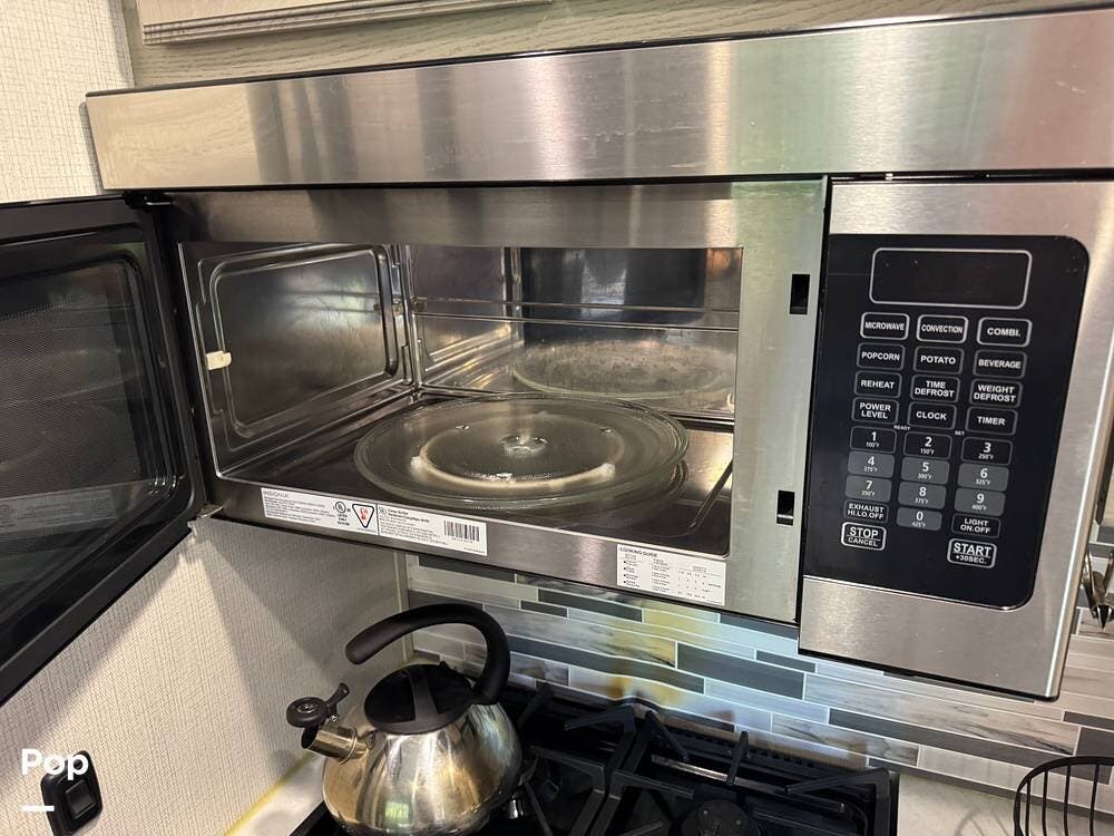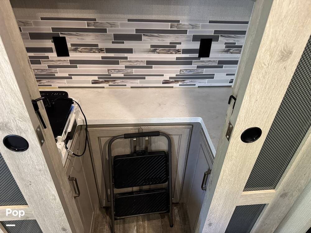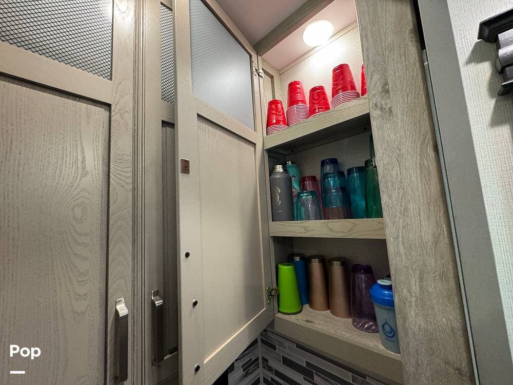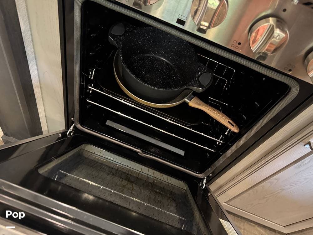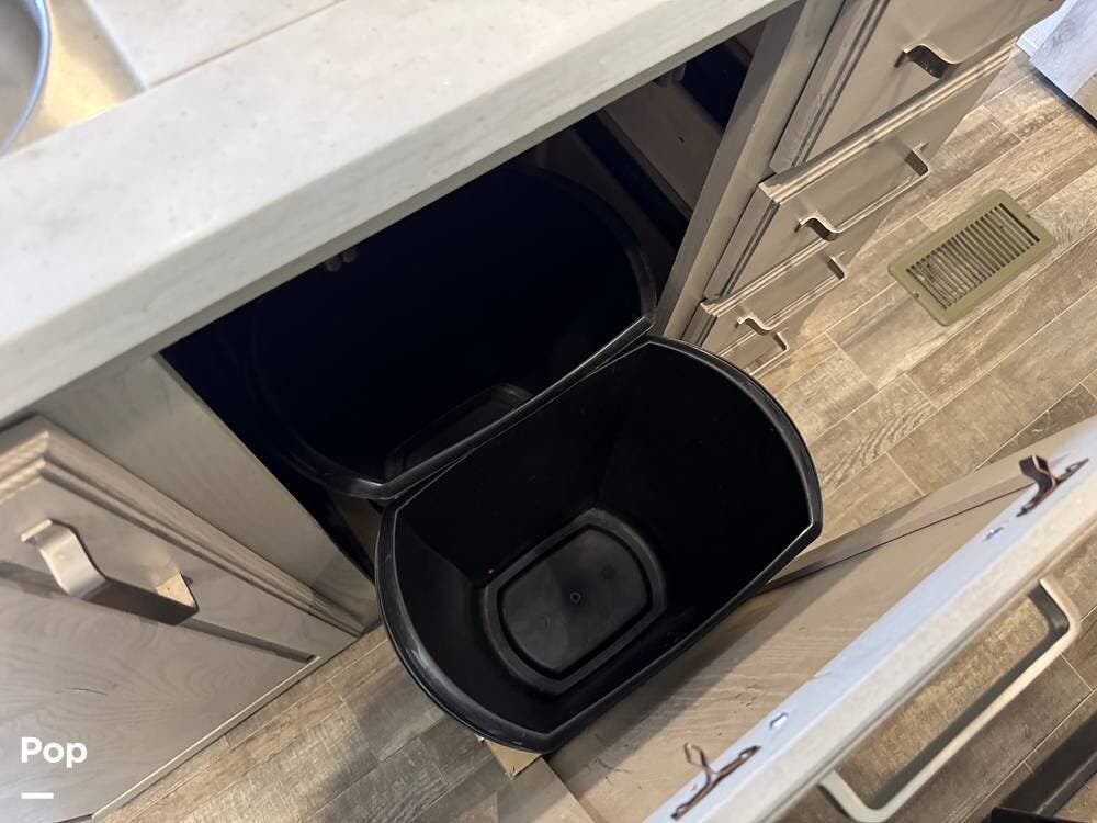 Other features of the camper include a 6-point hydraulic auto-leveling system, two large power awnings for outdoor shade, dual 30 lb propane tanks for extended camping, and a massive pass-through storage for all your gear.