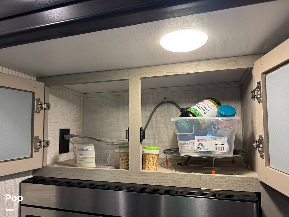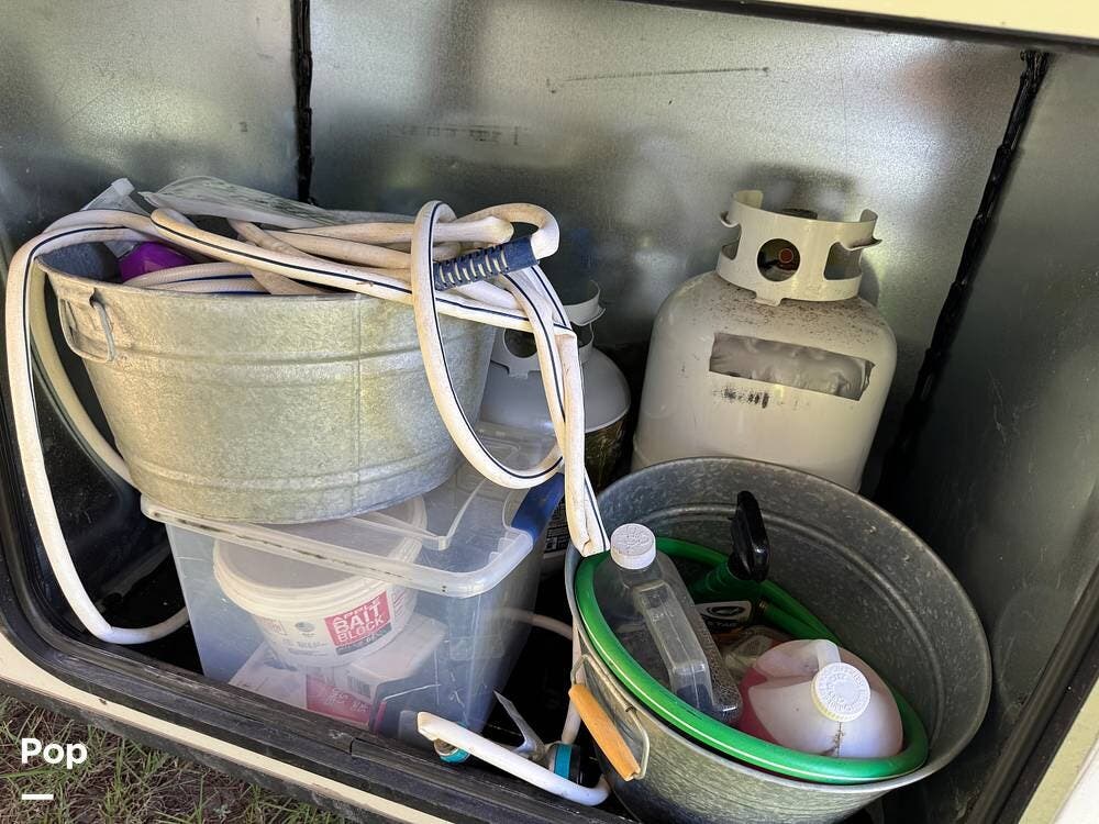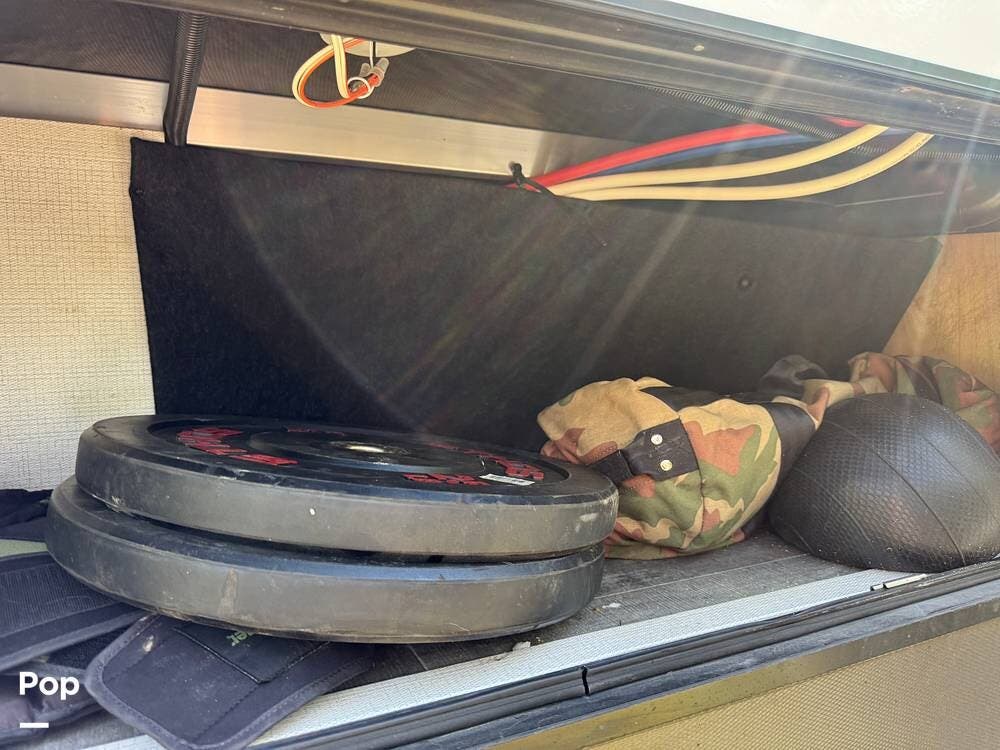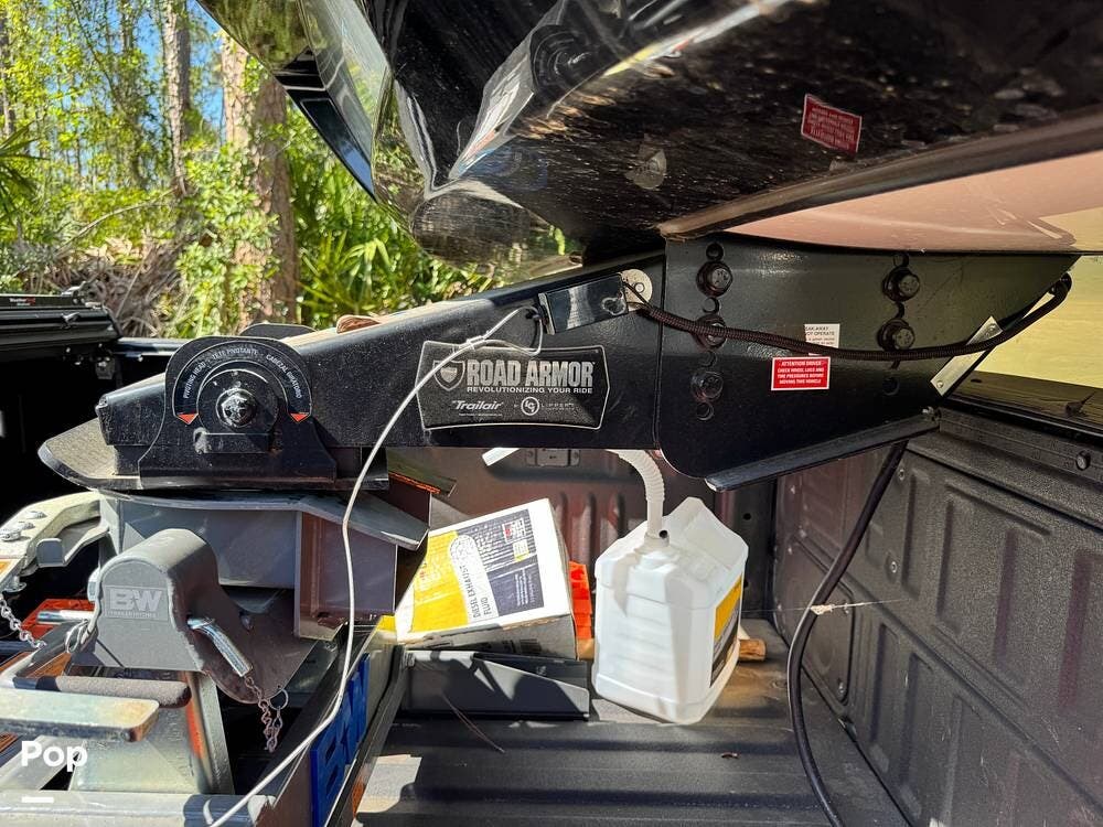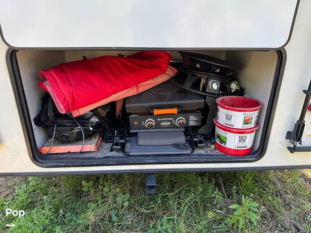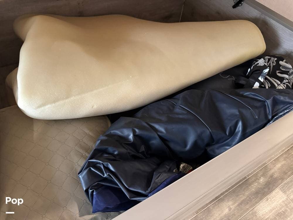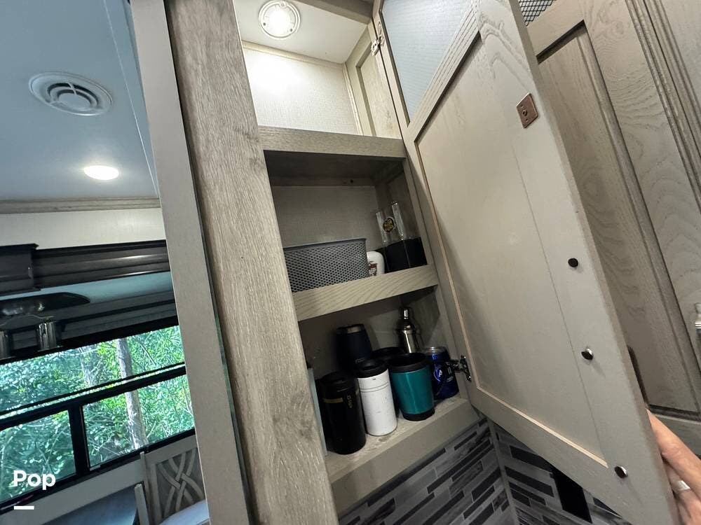 Other features of the camper include a 6-point hydraulic auto-leveling system, two large power awnings for outdoor shade, dual 30 lb propane tanks for extended camping, and a massive pass-through storage for all your gear.