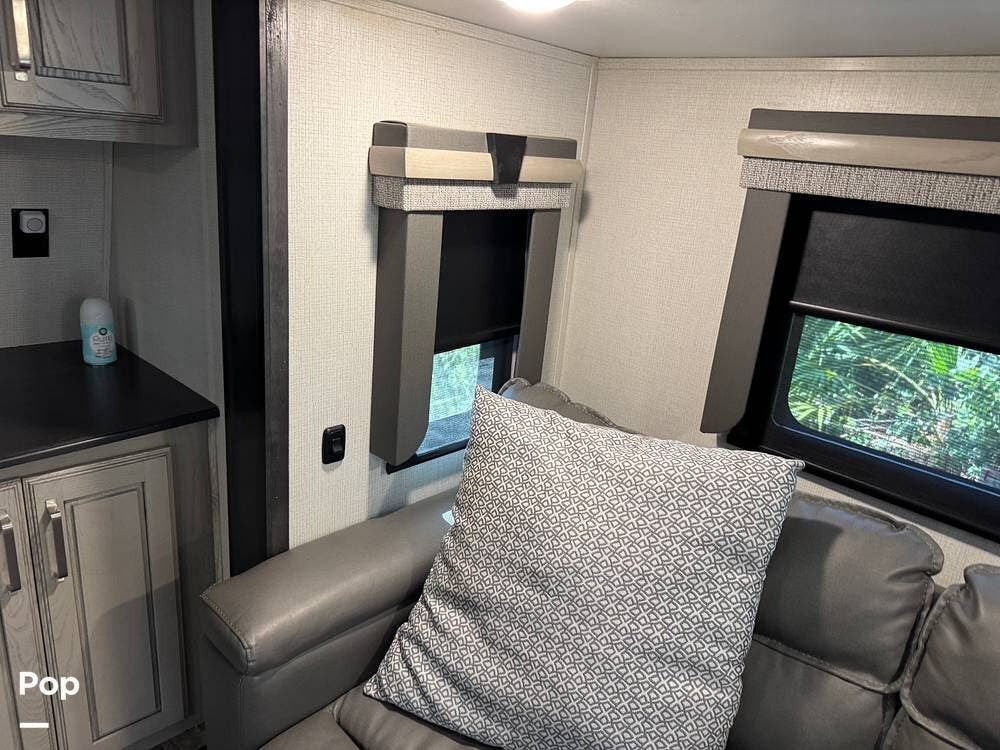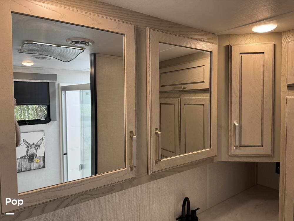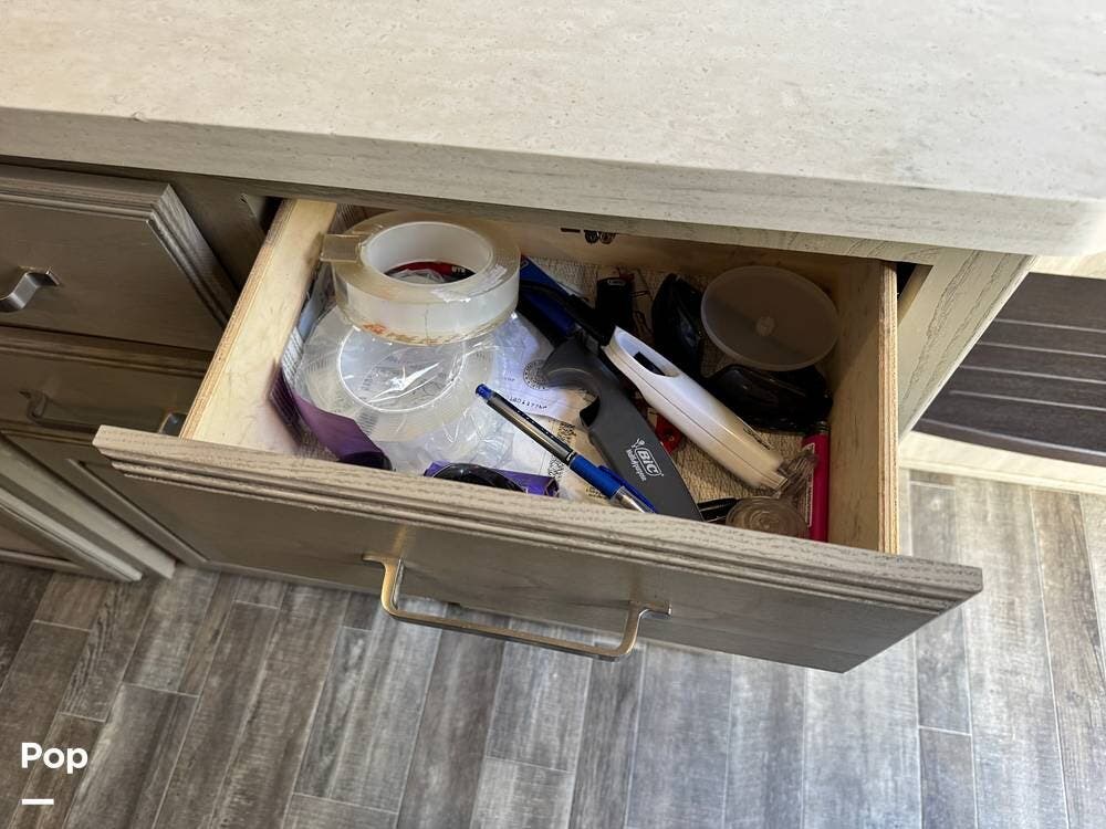 The floor plan makes this unit a dream to live in. The front living area features two convertible sofas, two stadium-style chairs, a TV, a fireplace, and plenty of storage space and room to move around. You'll love all the windows, too, as they let in a lot of natural light and have day/night shades.