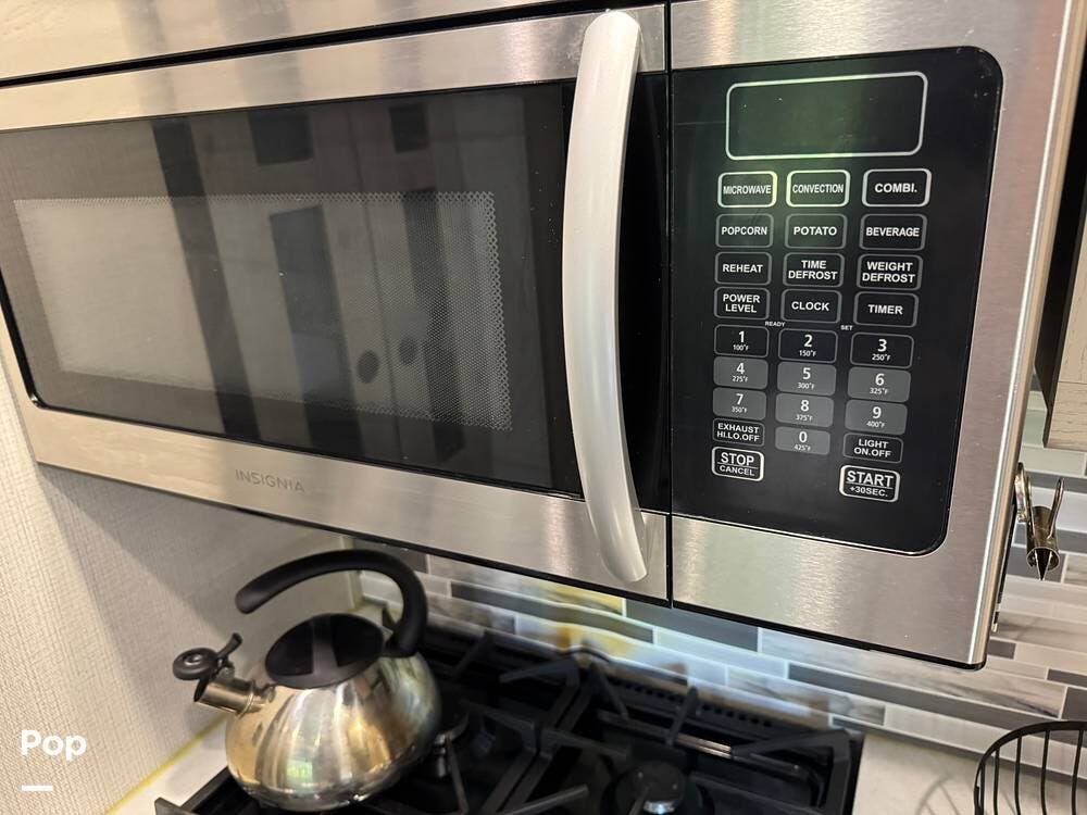 You'll love the spacious gourmet kitchen, which includes a residential-sized refrigerator with French doors and an ice maker, a large 3-burner cooktop and convection microwave, a kitchen island with a deep, stainless steel double sink, a huge pantry, and a coffee bar area. For your convenience, there is also an office set up in the closet area off the kitchen.