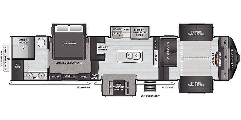 This high-end Keystone Alpine 3712KB is designed for luxury, convenience, and extended stays, offering a residential feel wherever you go.