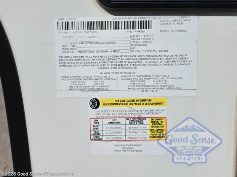 Request More Info on this 2022 Keystone Alpine 3720MD Offered for sale by Good Sense RV and Motors