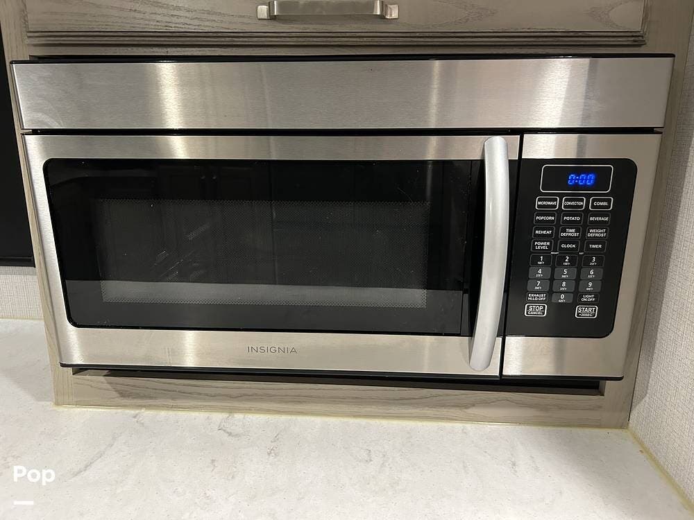 The kitchen has lightly used stainless steel appliances and a full-size residential refrigerator. Dual kitchen sinks with solid countertops make for a stylish look. The Microwave convection oven adds convenience to your cooking endeavors.