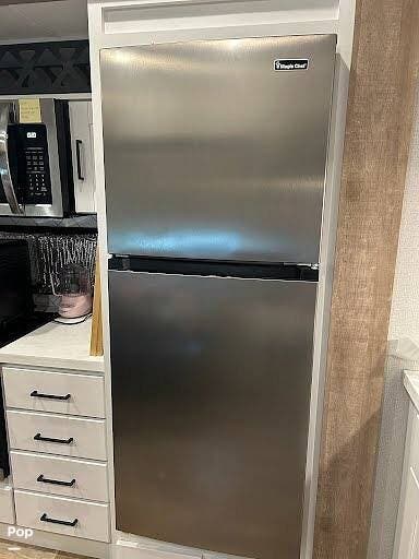 The Arcadia 3250RL offers everything you need to feel right at home on the road. The gourmet kitchen features stainless steel appliances, a large refrigerator, and plenty of counter space for meal prep.