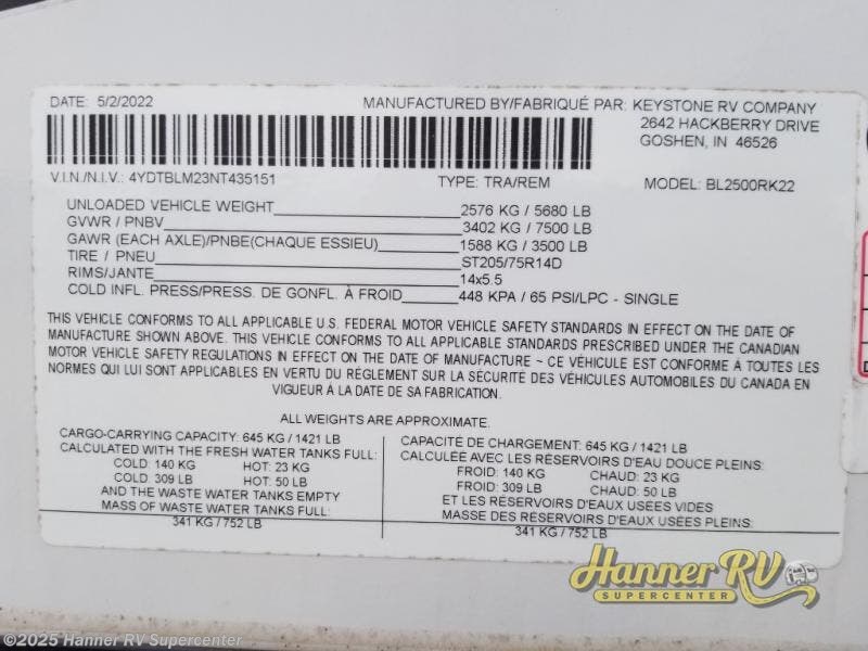 Request More Info on this 2022 Keystone Bullet Crossfire 2500RK Offered for sale by Hanner RV Supercenter