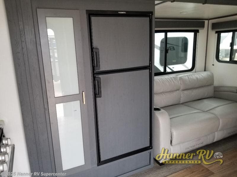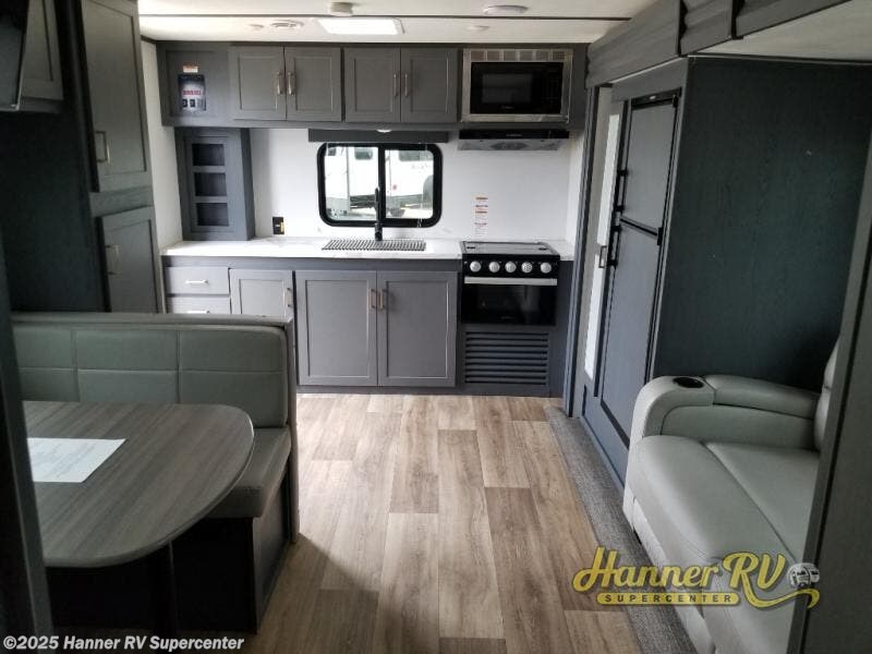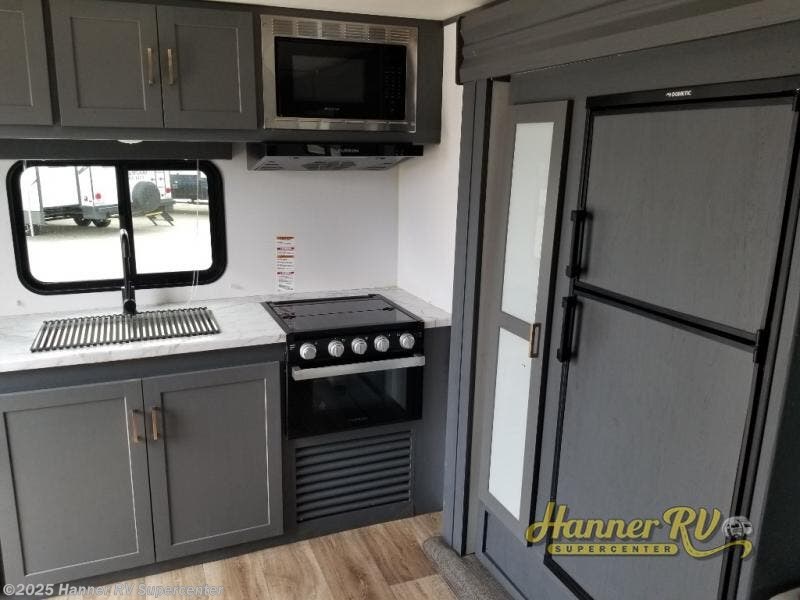 This rear kitchen travel trailer is perfect for your family of five to six. There are dual entry doors so you can enter in through the rear kitchen, or the front master bedroom. The spacious walk-through bath includes two linen closets to store toiletries and towels, plus there is plenty of counter space to get ready each morning. Whether you're relaxing on the tri-fold sofa, playing a game at the Dream Dinette, or visiting under the 19' power awning with LED lights, you'll enjoy every minute spent in this travel trailer!