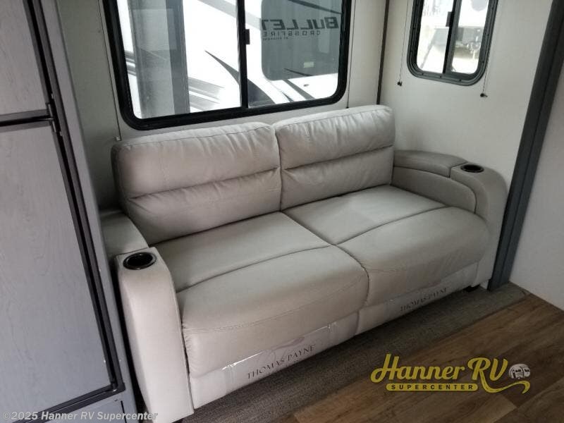 Each Bullet Crossfire by Keystone is constructed with a NORCO HSLA steel/automotive deposition coated frame assembled with huck bolts for durability. The one-piece ABS enclosed underbelly will help extend your camping season, and the Dexter E-Z Lube axles will provide smooth towing from home to campground. Setting up your trailer will be a breeze with the electric tongue jack and four electric stabilizer jacks, and there is an electric awning with adjustable arms and LED lighting for an inviting outdoor living space. The affordable, high-quality RV solar energy system, SolarFlex 200 comes standard with each model and will allow you to go off-grid when you want. Inside, you'll find fabric night shades, Beauflor with woven flooring in the slides, full depth cabinets with full extension drawer guides, and many more comforts.