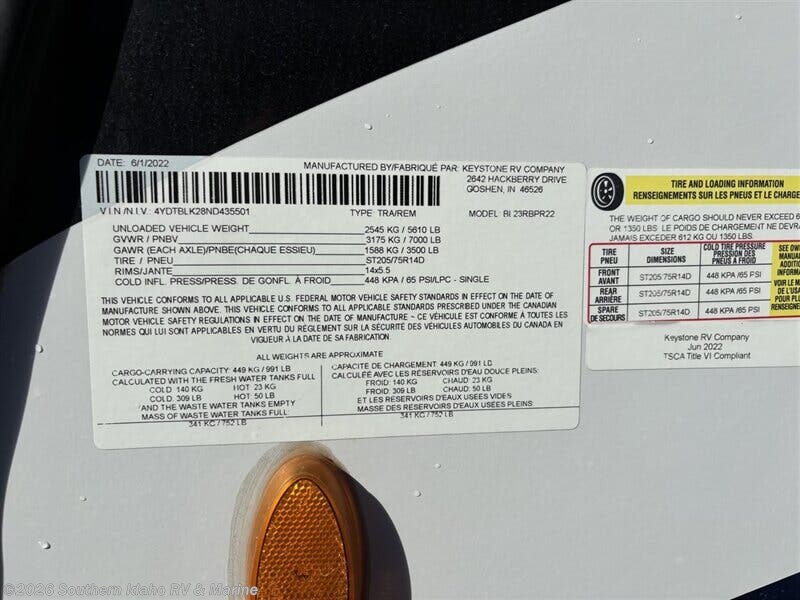 Request More Info on this 2022 Keystone Bullet Premier 23RBRP Offered for sale by Southern Idaho RV & Marine