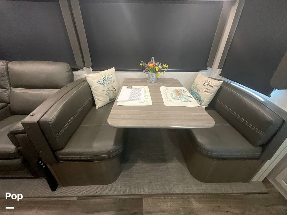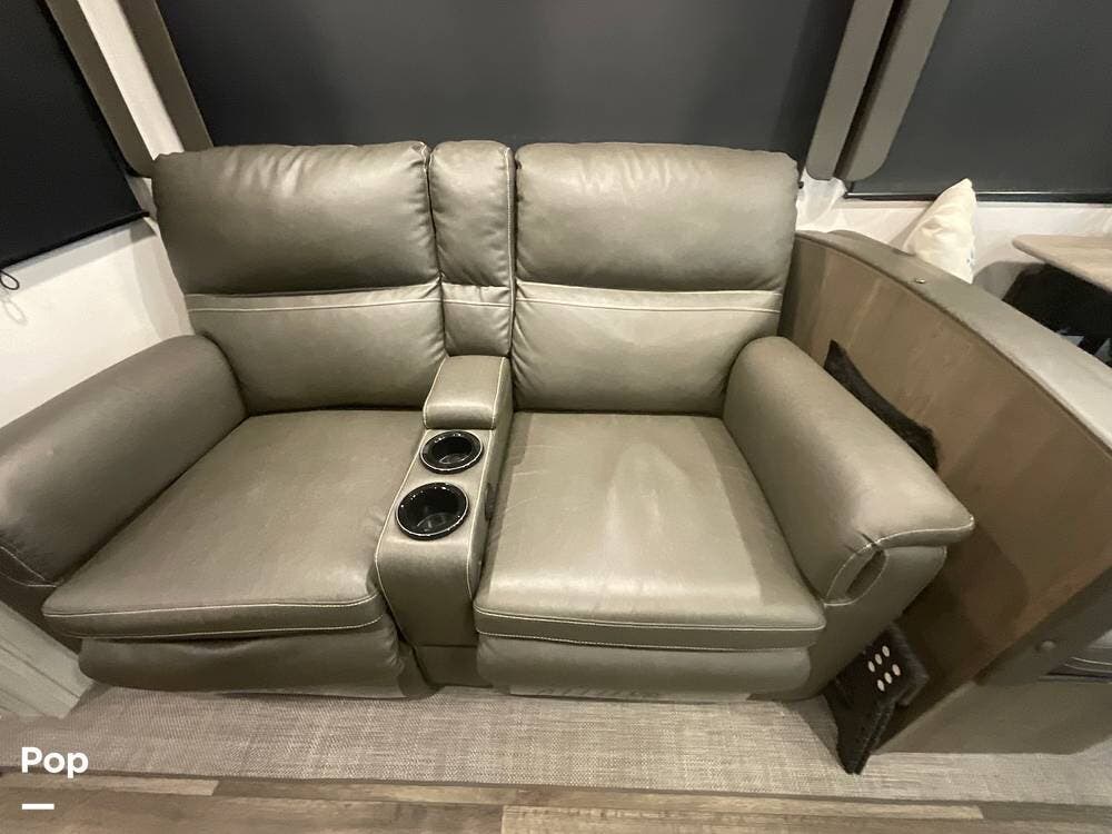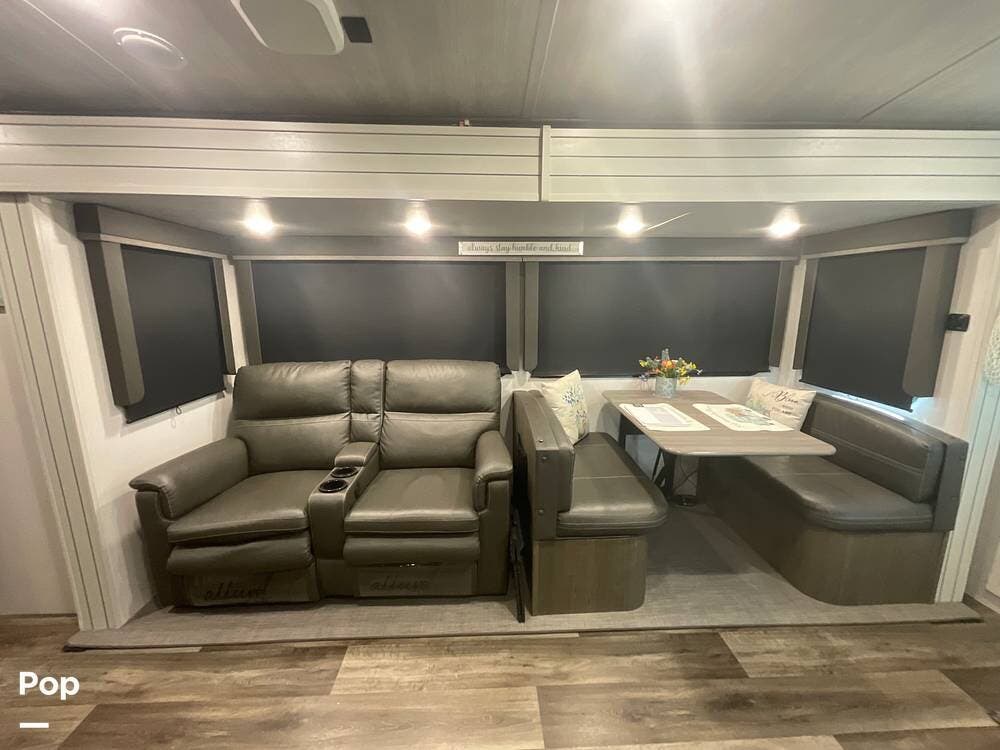 This is ideal as a couple's camper, although there is room for guests with the dinette sleeper. The recliners have heat, massage, and lighting, and can be used as another sleeping option.