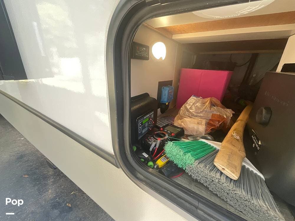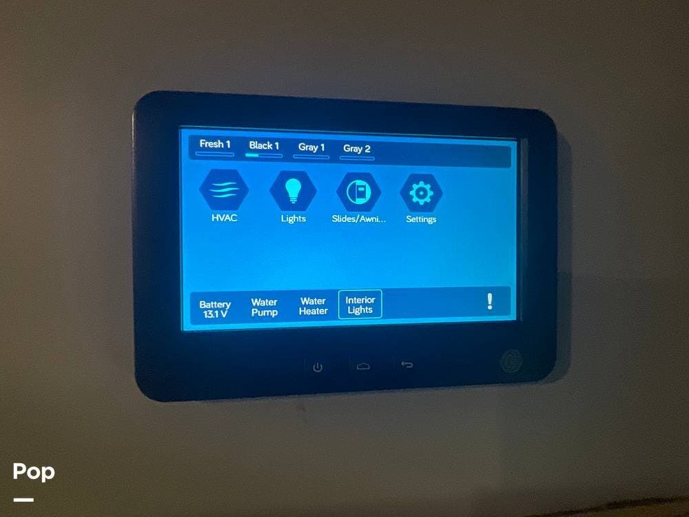 The seller made lots of upgrades, including a Brooklyn Bedding mattress, slide toppers, Hercules H901 all-steel tires, MorRyde CRE 3000 suspension equalizer, MorRyde wet bolt package, 2 MorRyde X Factor crossmembers, Furrion camera system (rear, left, right), and the LevelMate Pro. He also installed a second 12V AGM battery.
