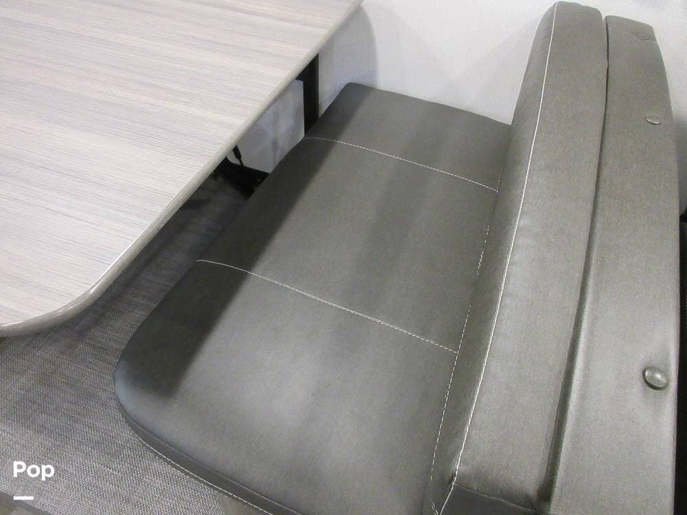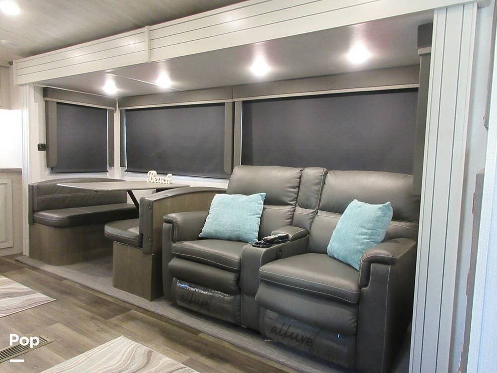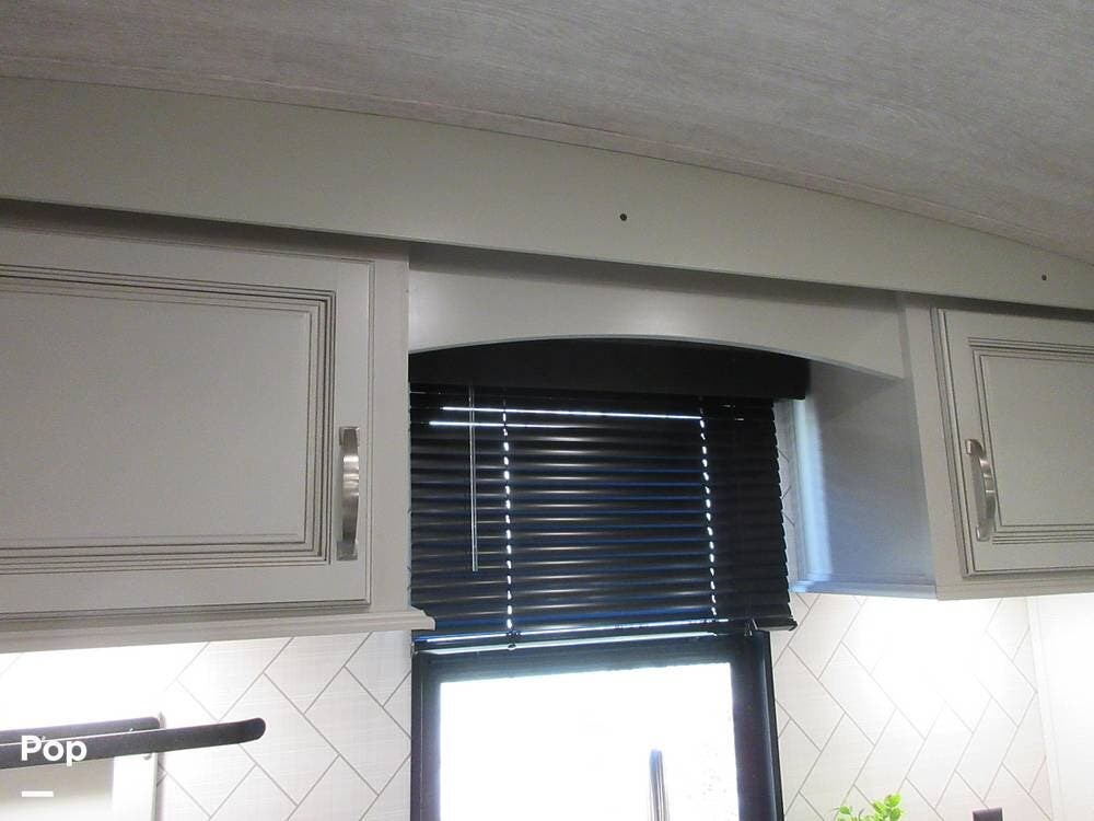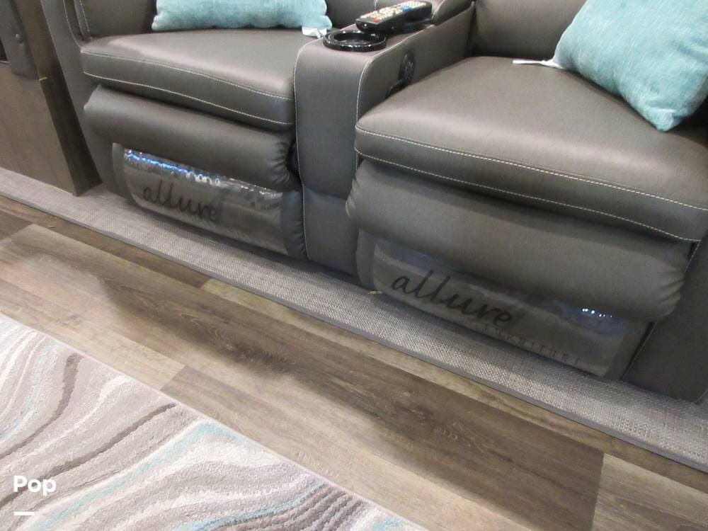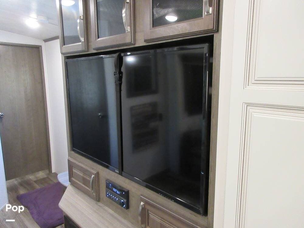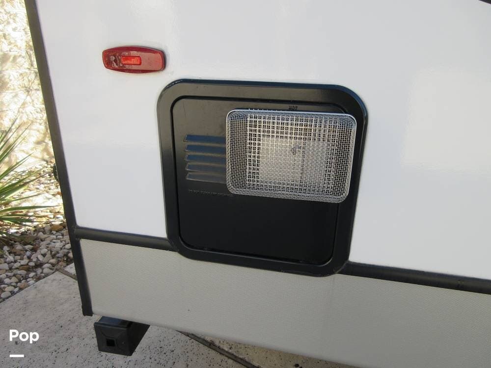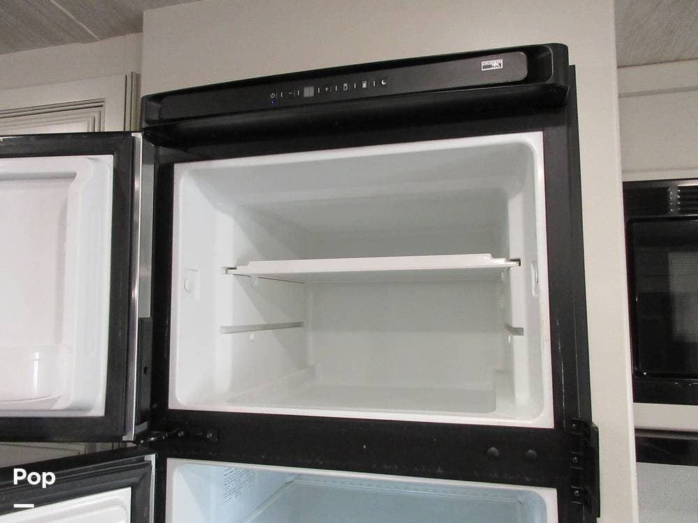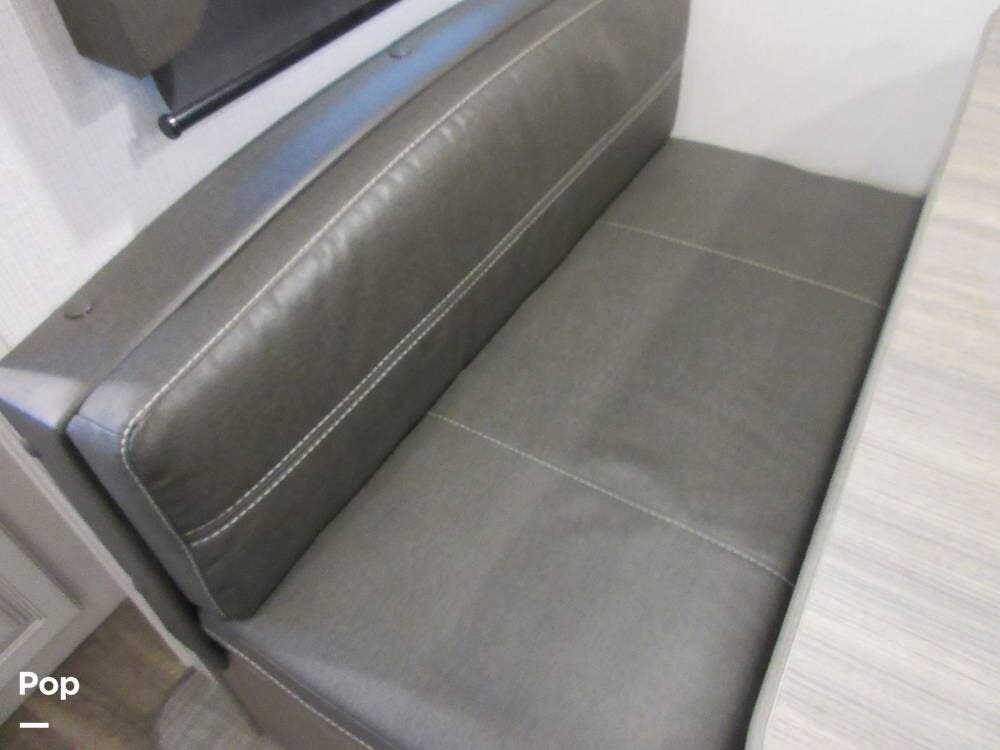 Designed with two large slide-outs, this RV feels extra spacious for a trailer of this size. The rear wraparound kitchen allows plenty of walking space for the living area and entertainment center.