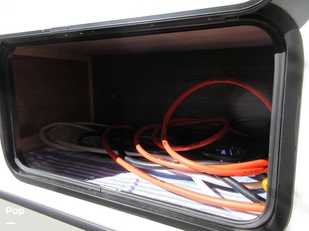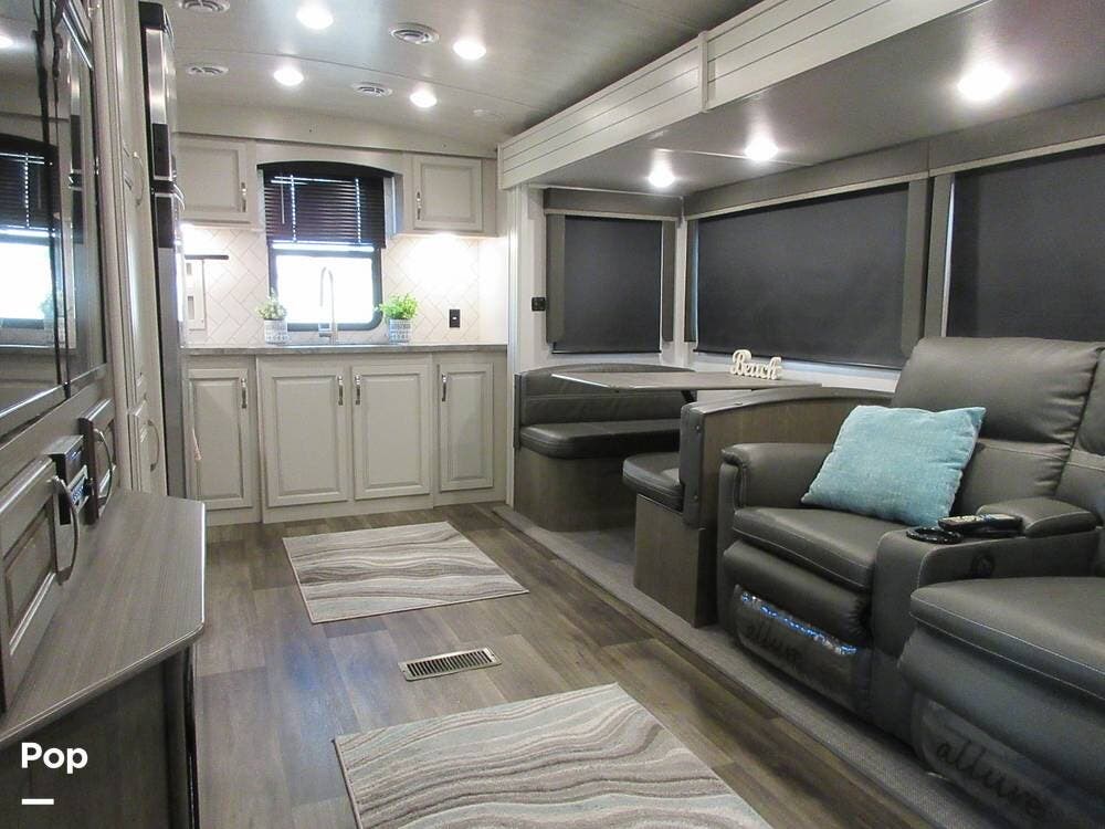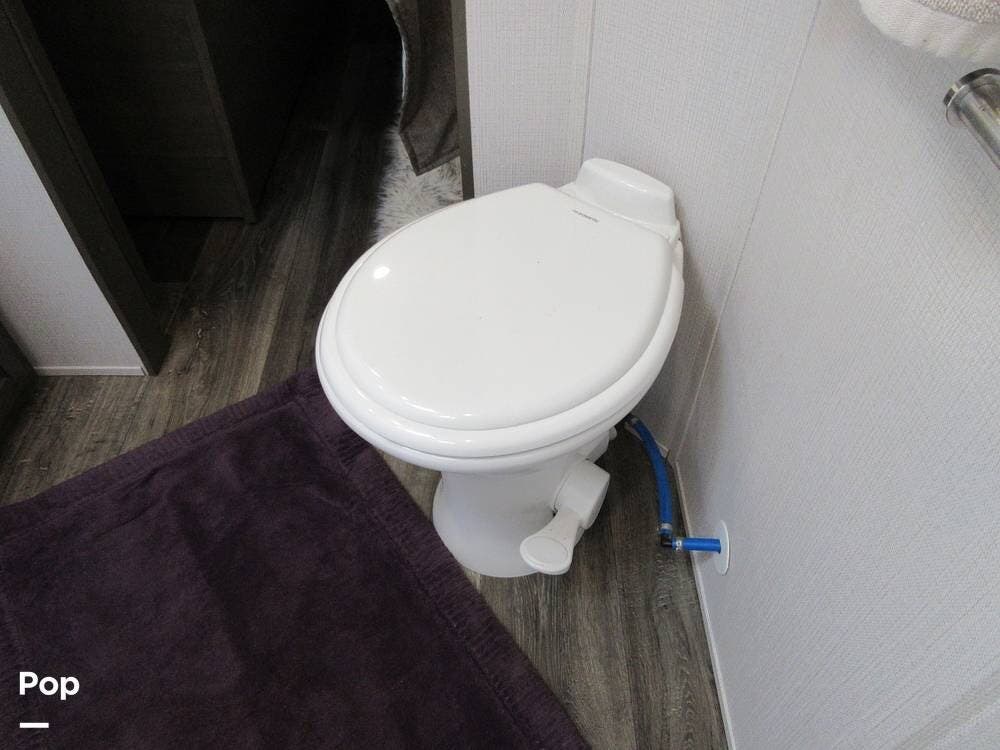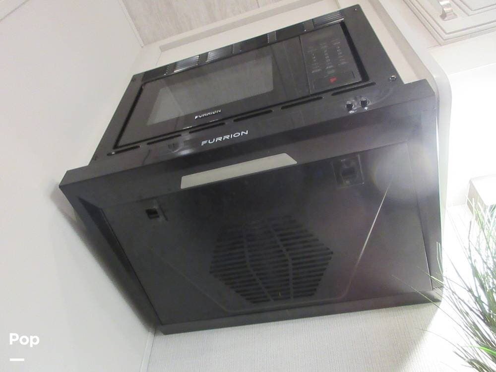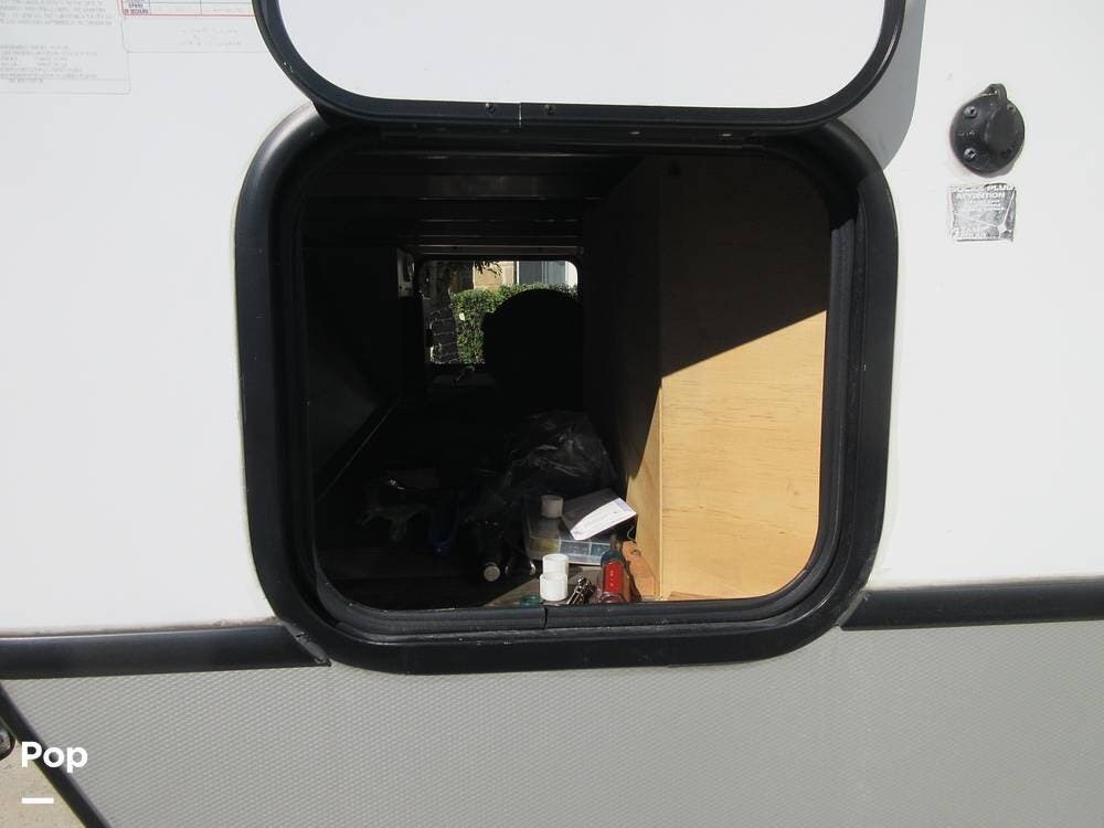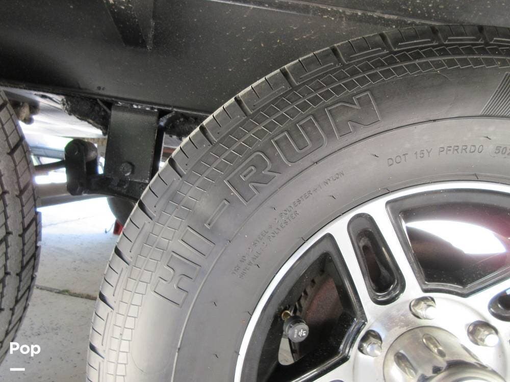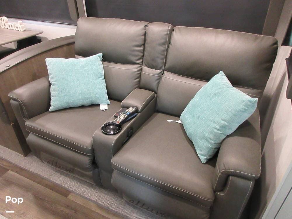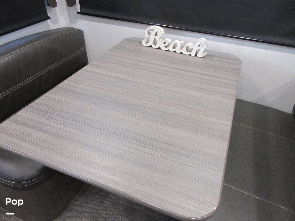 Designed with two large slide-outs, this RV feels extra spacious for a trailer of this size. The rear wraparound kitchen allows plenty of walking space for the living area and entertainment center.