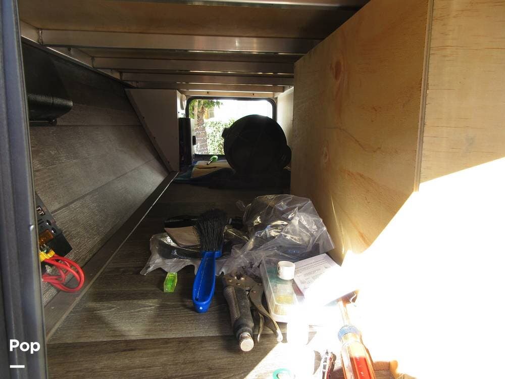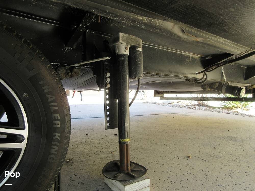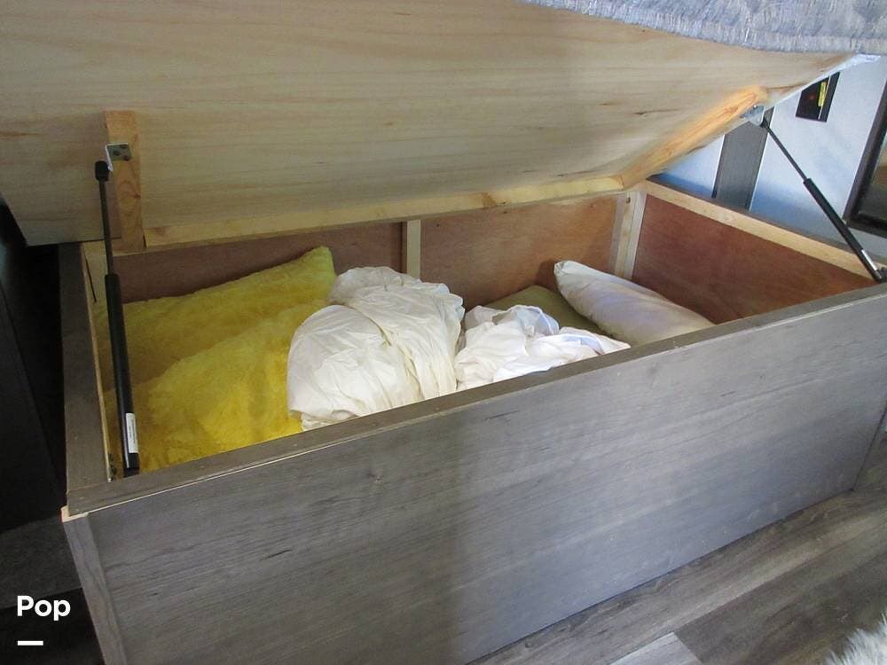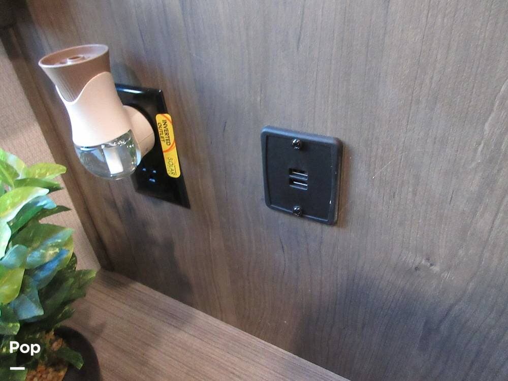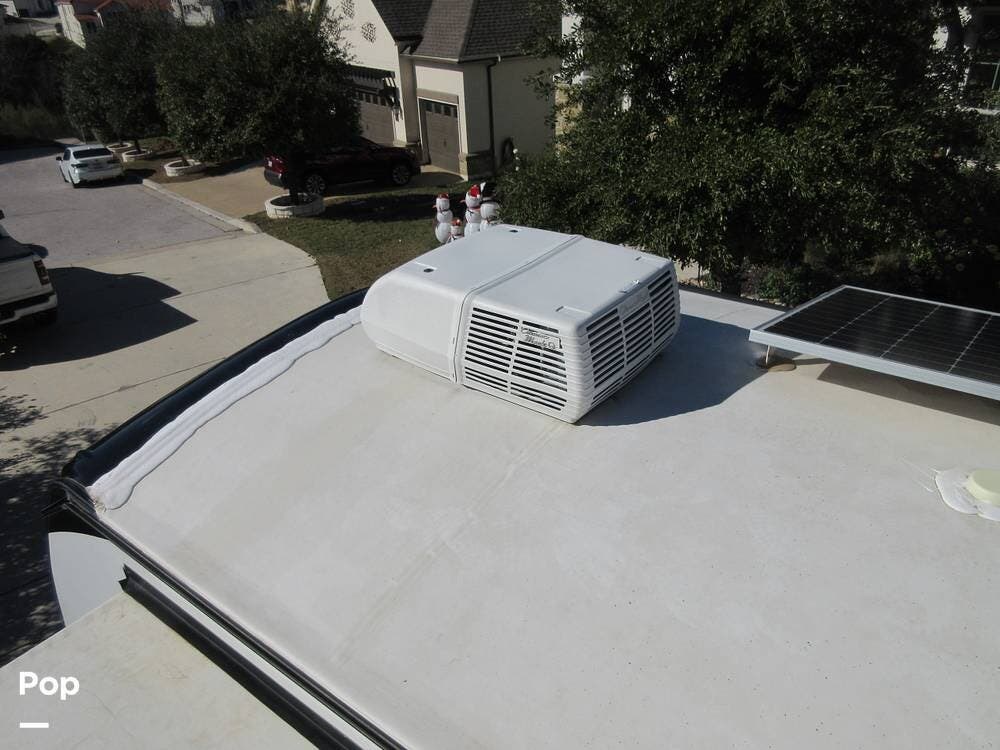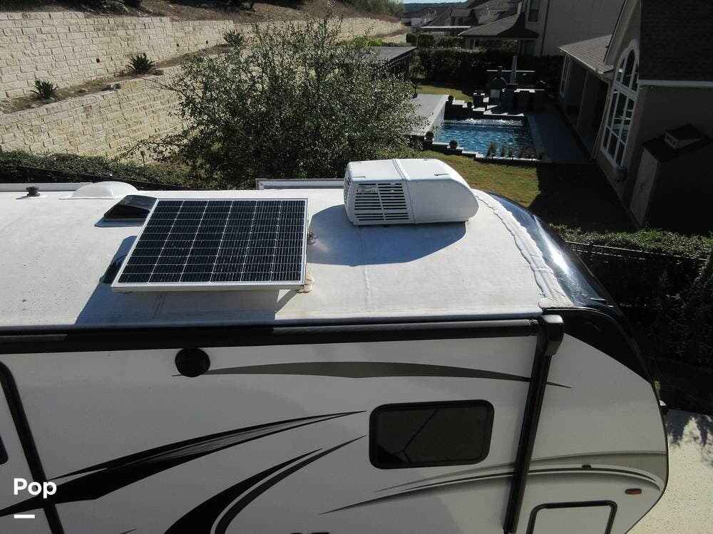 It has one solar panel on the roof, a Smart controller/charger, a Bluetooth-connected smartphone app to update you on the charge status, and a Zamp portable solar panel charge port. The RV currently has one house lithium battery (recent purchase). The tongue rack does have room for an extra battery if you choose to add one.