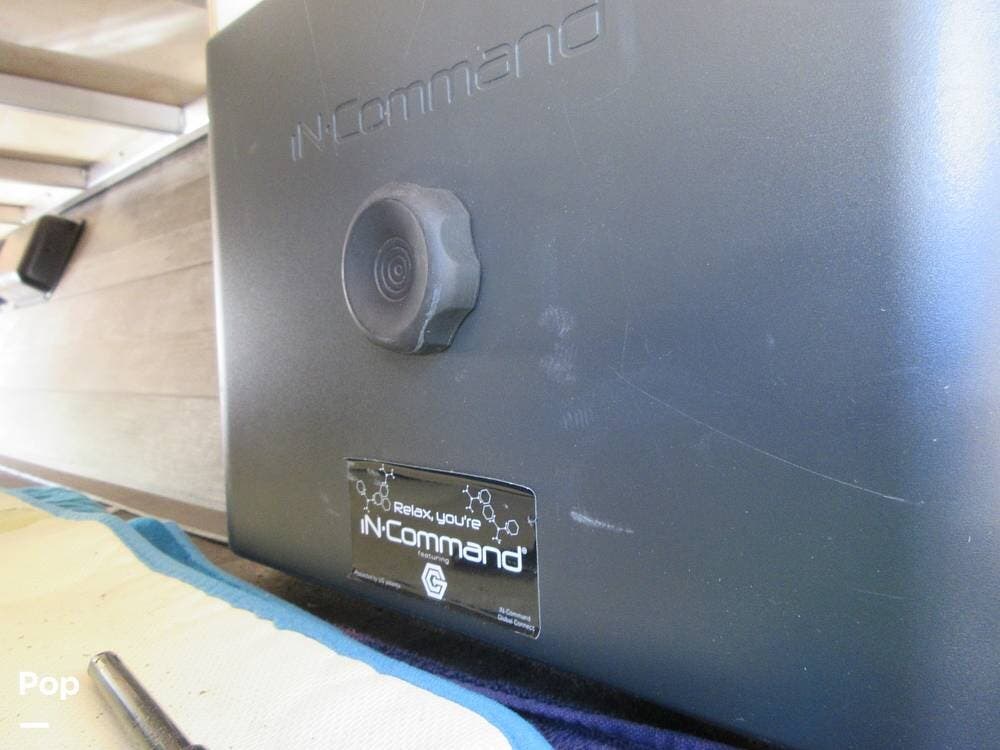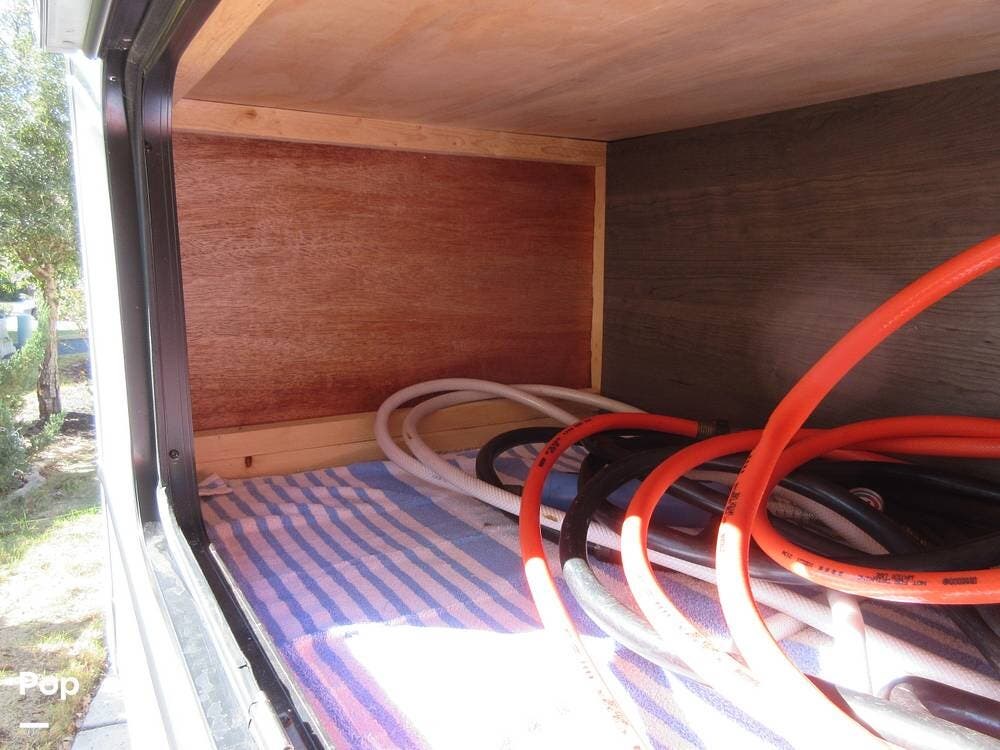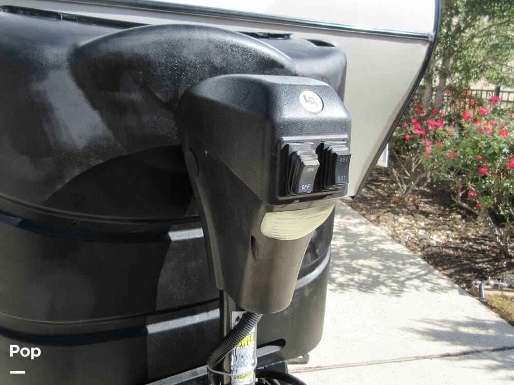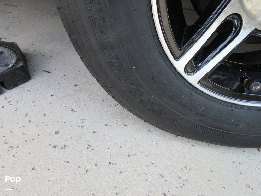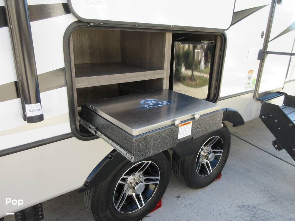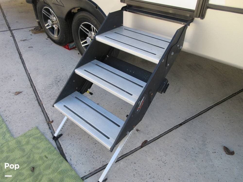 It has one solar panel on the roof, a Smart controller/charger, a Bluetooth-connected smartphone app to update you on the charge status, and a Zamp portable solar panel charge port. The RV currently has one house lithium battery (recent purchase). The tongue rack does have room for an extra battery if you choose to add one.