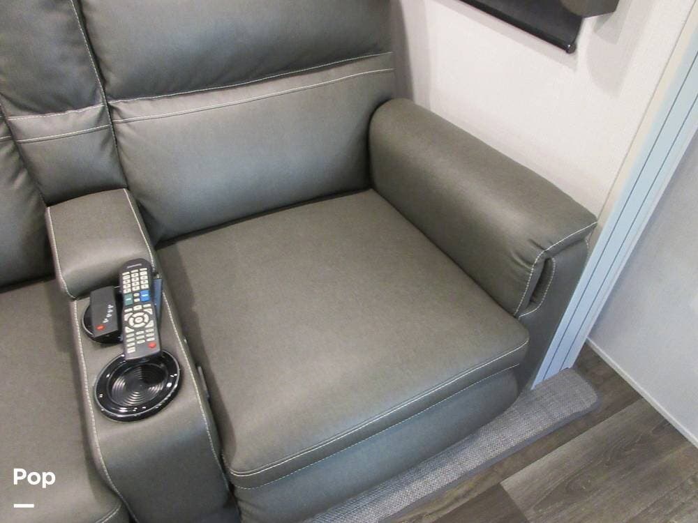 If you like comfort and convenience indoors, head on inside. This Cougar has two plush recliners (with massage, heat mode, and USB ports), a large dinette sleeper, and a cozy king bed with an upgraded mattress. Entertainment is at your fingertips with an AM/FM/CD/DVD Bluetooth stereo and a large 50" HDTV. The bedroom is also prewired for a TV if you want to add one later.