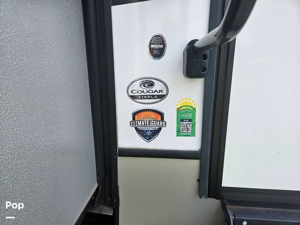 This 2022 Cougar 316RLS has two 100-watt Solar Panels, three slide-outs with slide toppers, and 12V tank heaters. It is equipped with the Climate Guard, the best climate protection in the industry. It is tested to a temperature rating of 0* and up to 110*. It has a Ground Control 3.0 Auto Leveling System, leveling jacks that automatically level your RV within 2 minutes with the touch of a button.