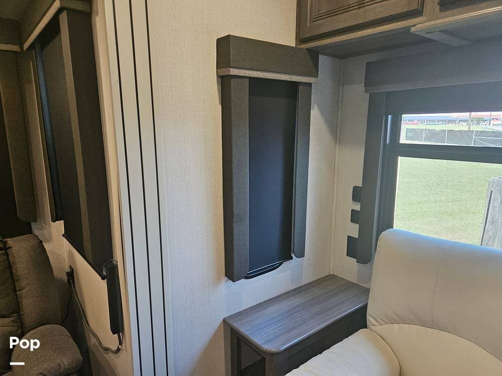 It has IN-Command Generation 3 with global connect central monitoring panel, systems monitoring, and total control over power, slide rooms, awnings, and HVAC. It is equipped with Blade Pure-Coleman Mach Q series Air Conditioners, while Merv 9 filtration removes airborne contaminants, reduces noise, and keeps you cooler.