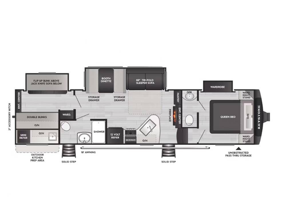Outside, the exterior kitchen is ready for entertaining with a grill, refrigerator, sink, and cabinet storage. Combined with the awning, this Cougar makes it easy to enjoy meals and relax outdoors just as comfortably as inside.