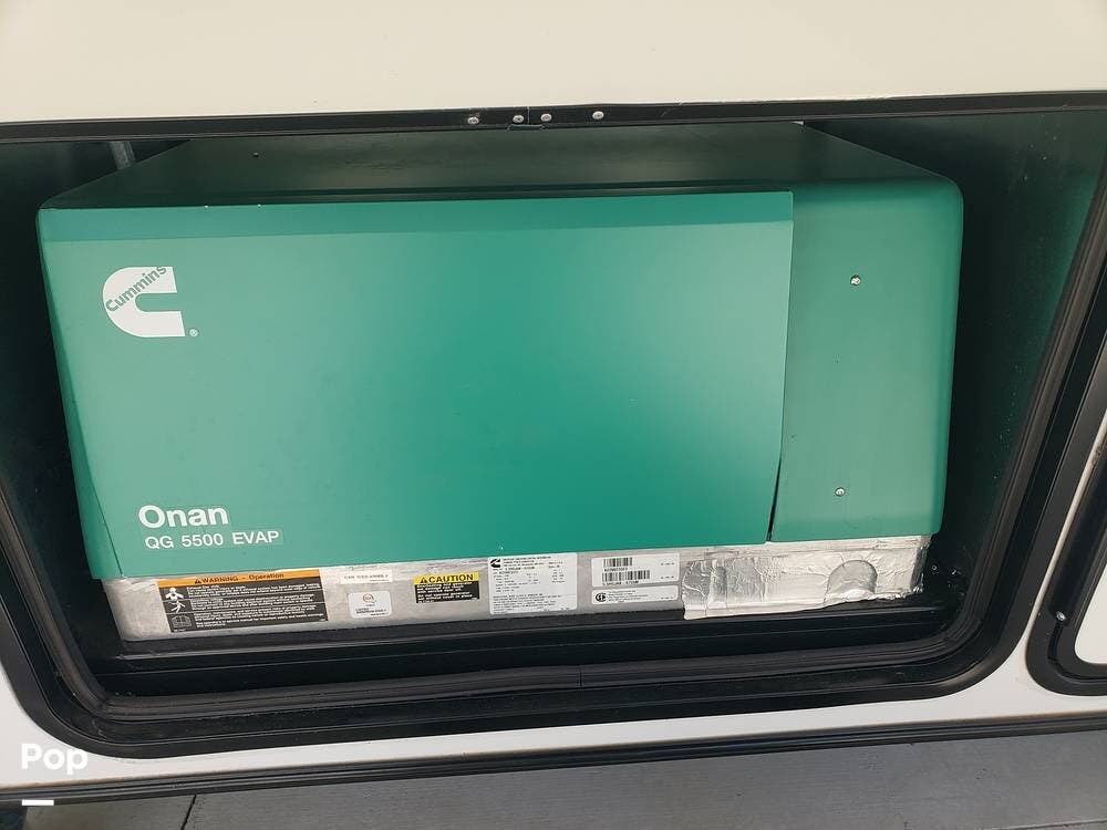There is outside storage, a fueling station, roof ladder access, an Onan QG 5.5kW generator, a patio awning and two pull-out entry steps.