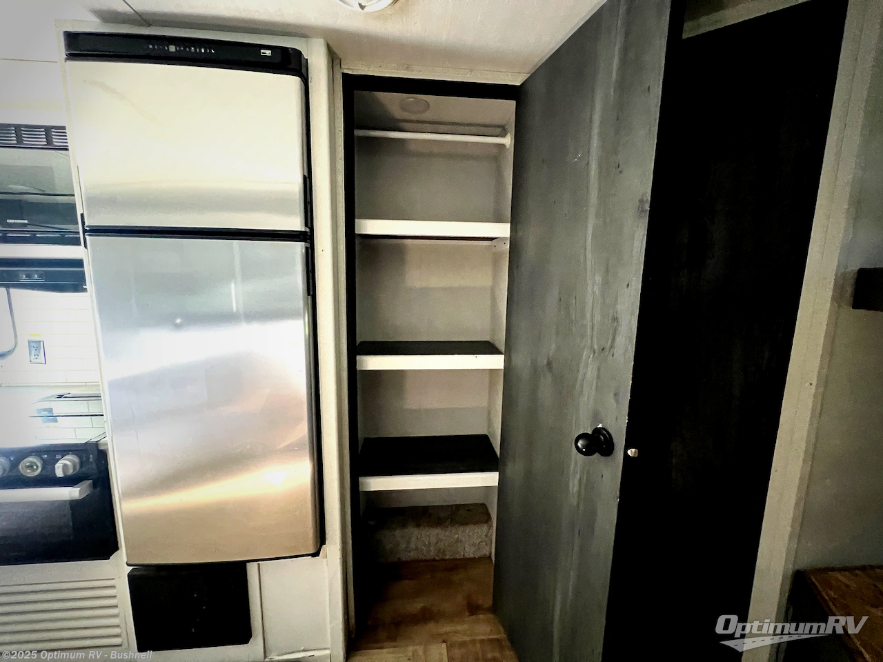 Get away with ease in this Hideout travel trailer! You will have your own private place to sleep in each night with the private bedroom up front. This bedroom has a queen-size bed, closets and nightstands on either side of the bed, overhead cabinets, and a laundry chute. Just outside the bedroom is where the entertainment center is located. The entertainment center has been prepped for a fireplace, and you can add an optional 40" HDTV too. The large slide holds the booth dinette and jackknife sofa, and the central vacuum will help you clean up any messes that are made throughout the trip.