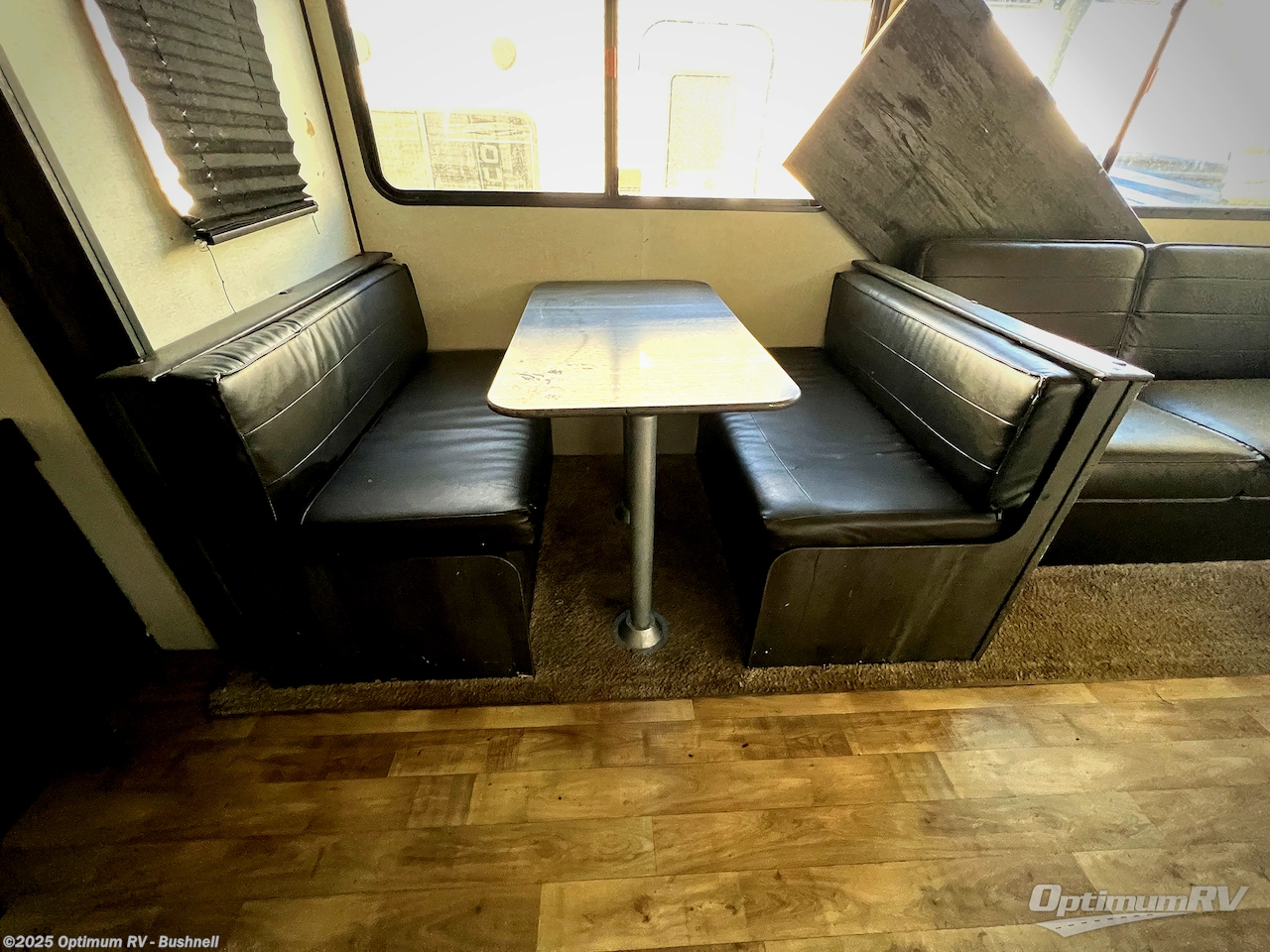 Get away with ease in this Hideout travel trailer! You will have your own private place to sleep in each night with the private bedroom up front. This bedroom has a queen-size bed, closets and nightstands on either side of the bed, overhead cabinets, and a laundry chute. Just outside the bedroom is where the entertainment center is located. The entertainment center has been prepped for a fireplace, and you can add an optional 40" HDTV too. The large slide holds the booth dinette and jackknife sofa, and the central vacuum will help you clean up any messes that are made throughout the trip.