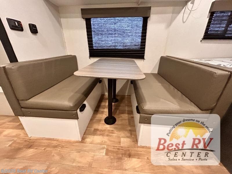 With any Keystone Hideout Single Axle travel trailer, there is an aluminum exterior allowing each to be lightweight for easy towing, the SolarFlex 200 so you can camp off-grid, tinted safety glass windows, and LCI SolidStep entry steps for stability when entering and exiting. The interior is light and airy, and includes a furnace, bedside outlets, blackout night shades, and more. You will also appreciate the Keystone exclusives such as the color-coded unified wiring, the 4G LTE and Wi-Fi prep, the Tuf-Lok thermoplastic duct joiners, the in-floor heating ducts, and the Tru-Fit slide construction.